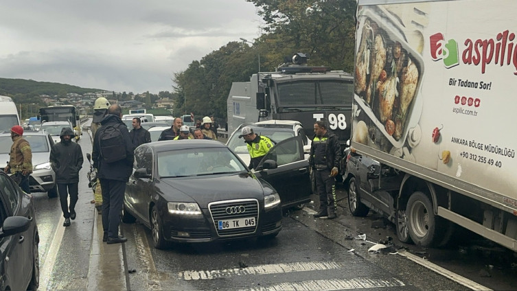 Üsküdar istiqamətində hərəkət edən və əyləcinin tutmadığı iddia edilən Çevik Müdaxilə Vasitəsi (TOMA) qarşısındakı avtomobilə çırpılaraq dayanıb.