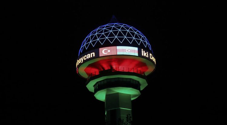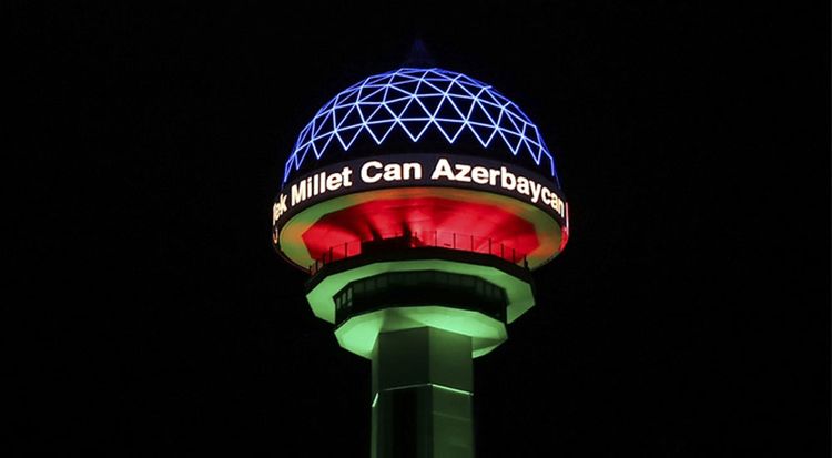 Türkiyənin paytaxtı Ankaranın simvollarından olan Atakule Azərbaycan bayrağının rəngləri ilə işıqlandırılıb.