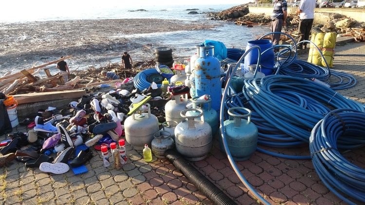 Lent.az Türkiyə mətbuatına istinadən xəbər verir ki, dənizin üzərini tamamilə örtən ağacları əhali istifadə üçün yığmağa başlayıb. Əşyaların isə seldən zərər görən insanlara paylanacağı açıqlanıb.