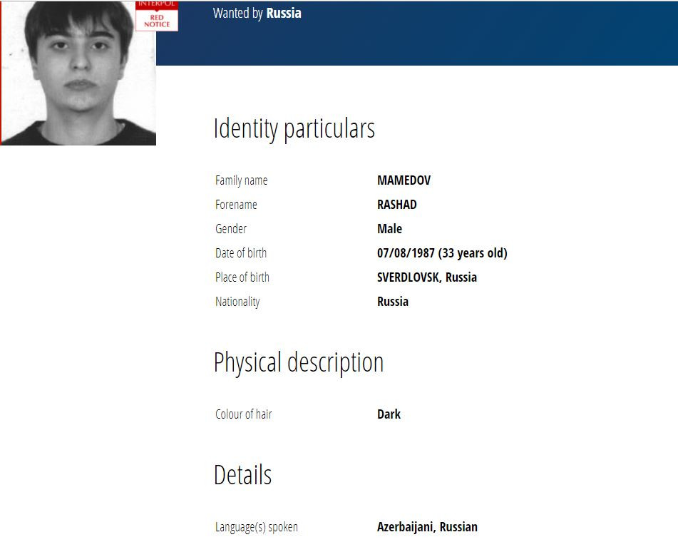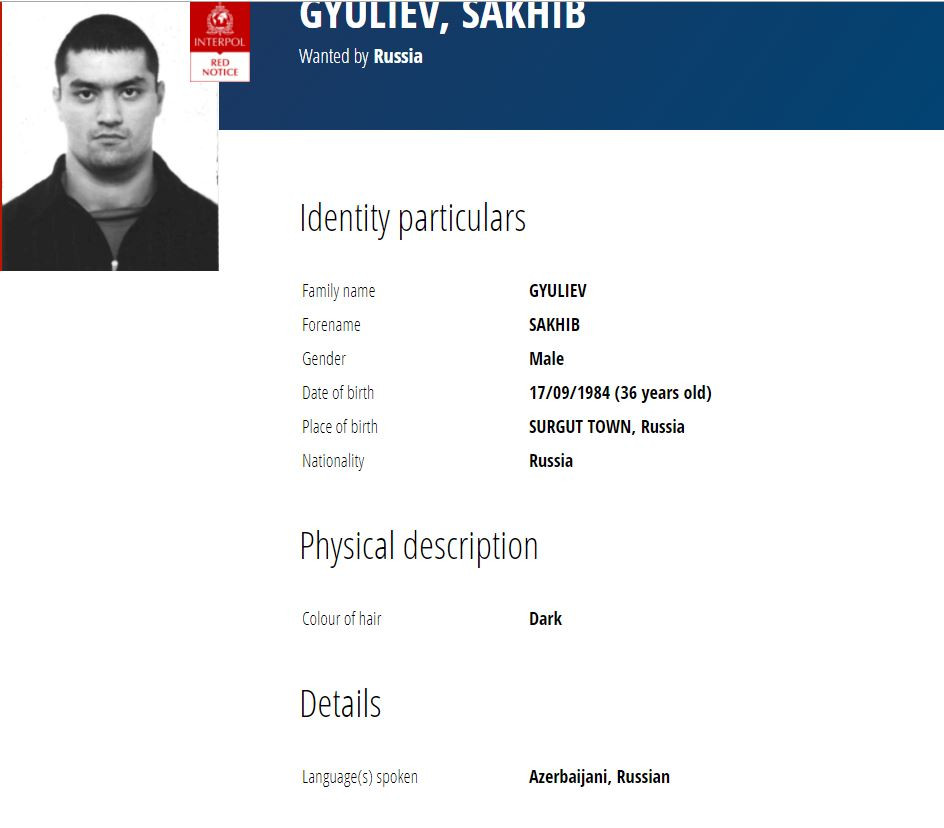 Lent.az-ın məlumatına görə, ölkənin hüquq-mühafizə orqanları Surqut şəhərində doğulan əslən azərbaycanlı 36 yaşlı Sahib Quliyev, Yekaterinburq şəhərində dünyaya gələn 33 yaşlı Məmmədov Rəşadı beynəlxalq axtarışa verib.