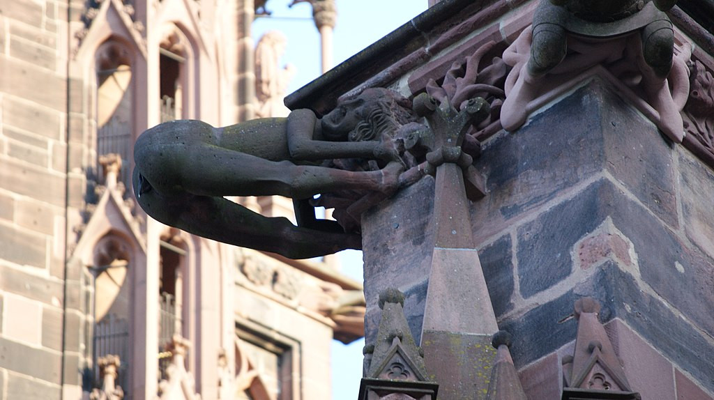 Yağış üçün navalçalar bir qayda olaraq heyvan və ya bədheybət fiqurundan ibarət olurdu. Lakin kilsənin bələdiyyəyə baxan tərəfindəki qarqoyl çılpaq qadın obrazındadır. Səbəb isə bələdiyyənin ustanın pulunu kəsməsi və gecikdirməsidir.