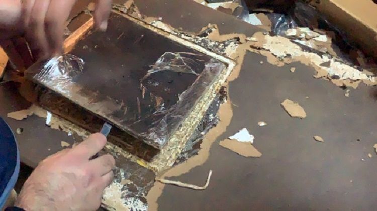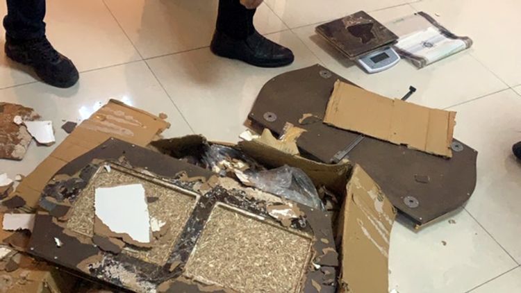 Baxış zamanı, karton qutunun içərisindən sökülmüş vəziyyətdə olan təkərli masanın hissələri aşkarlanıb. Həmin masanın "mdf" materialından olan alt, üst panellərinin və oval şəklində olan aksessuarlarının arxalarına sonradan bərkidilən faner lövhələrin altından, təmiz çəkisi 2455 qram narkotik vasitə - tiryək aşkar edilib.