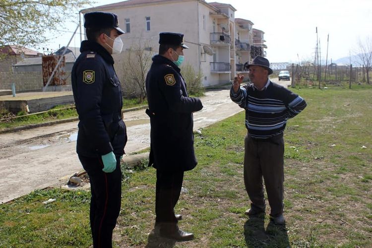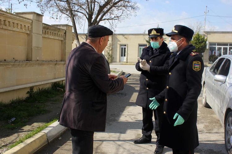 Rayon Polis Şöbəsinin əməkdaşları mütəmadi olaraq səsgücləndiricilər vasitəsilə koronavirus infeksiyasının yayılmasının qarşısının alınması istiqamətində tətbiq olunan qaydalar barədə əhaliyə məlumat verir. Küçə və prospektlərdə gəzən 65 yaşdan yuxarı insanlarla profilaktiki söhbətlər apararaq, onların çölə çıxmamaları bir daha izah olunmaqla yaşadıqları ünvanlara qaytarılması təmin olunur.