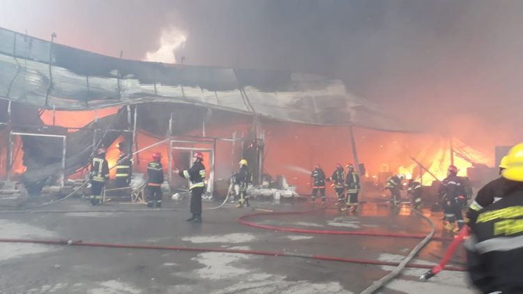 "Bakı-Sumqayıt yolunda yerləşən tikinti materialları bazarında baş vermiş güclü yanğın səbəbindən yolda hərəkət tamamilə məhdudlaşıb".