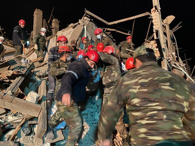 Fövqəladə Hallar Nazirliyindən Lent.az-a verilən məlumata görə, dərhal əraziyə cəlb olunmuş nazirliyin müvafiq qüvvələri tərəfindən bu saat qədər dağıntılar altından xəsarət almış 17 nəfər və 7 nəfərin cəsədi çıxarılıb.