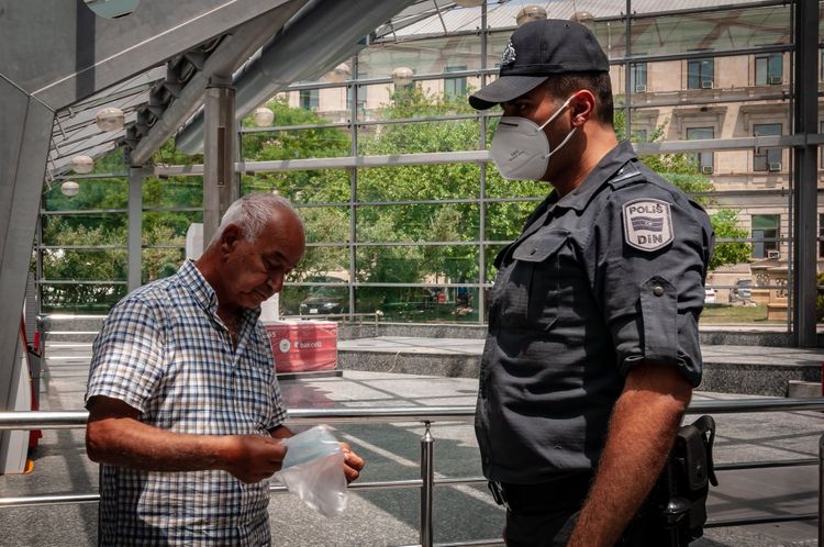 Metropolitenində polis şöbəsinin və inzibati ərazilərdə xidmətə cəlb olunan əməkdaşlardan ibarət naryad qrupları stansiyaların girişlərində, platformalarında, mövcud preventiv tədbirlərə əməl etməyən şəxslərlə profilaktiki söhbətlər aparıblar. Diqqətə çatdırılıb ki, koronavirus infeksiyasının insanlar arasında kütləvi yayılmasının qarşısının alınması məqsədilə hər bir hərəkət iştirakçısı sosial məsafəni gözləmək şərtilə tənəffüs yollarını qoruyan fərdi vasitələrdən – tibbi maskalardan istifadə etməlidir. Nəzərlərinə çatdırılıb ki, hər bir şəxs tətbiq olunan qaydalara, sosial məsuliyyətdən irəli gələrək özünü, yaxınlarını və digər şəxsləri qorumaq üçün mövcud sanitar-gigiyenik qayda və tələblərə ciddi riayət etməli, başqalarını da buna çağırmalıdır.