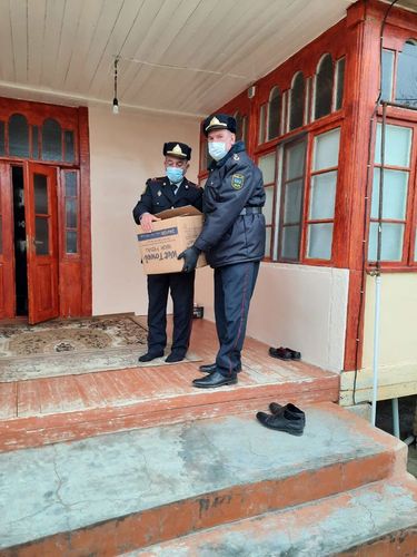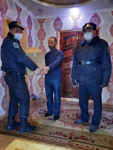 Saatlı rayonunda polis əməkdaşları maddi imkanı zəif olan sakinlərə və tənha yaşayan yaşlı insanlara, eləcə də Milli Qəhrəman Elşən Hüseynovun ailə üzvlərinə müxtəlif ərzaq məhsullarından ibarət sovqatlar veriblər. Onlara evdə qalmaqlarının vacib olduğu bir daha izah edilib.