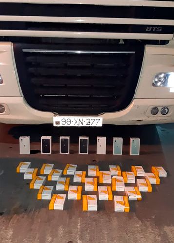 Dövlət Gömrük Komitəsindən Lent.az-a verilən xəbərə görə, yoxlama zamanı nəqliyyat vasitəsinin kabinasında olan oturacağın və yataq yerinin altında gömrük nəzarətinə bəyan olunmayan 7 ədəd "iPhone 11 64 GB" markalı mobil telefon tapılıb. Həmçinin kabinənin ön panelinin alt hissəsindəki boşluqda isə gömrük nəzarətindən gizlədilən 2500 kapsul dərman preparatları aşkarlanıb.