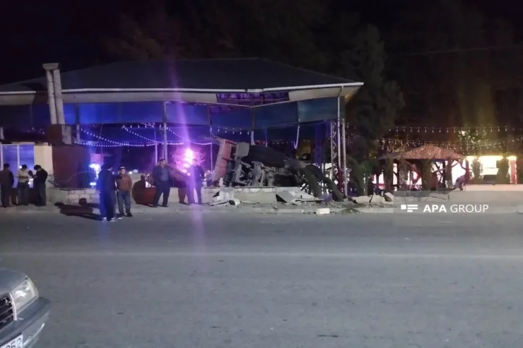 Zərbənin təsirindən idarəetməni itirən “KamAZ” yol kənarındakı restoranın ərazisinə girərək aşıb.