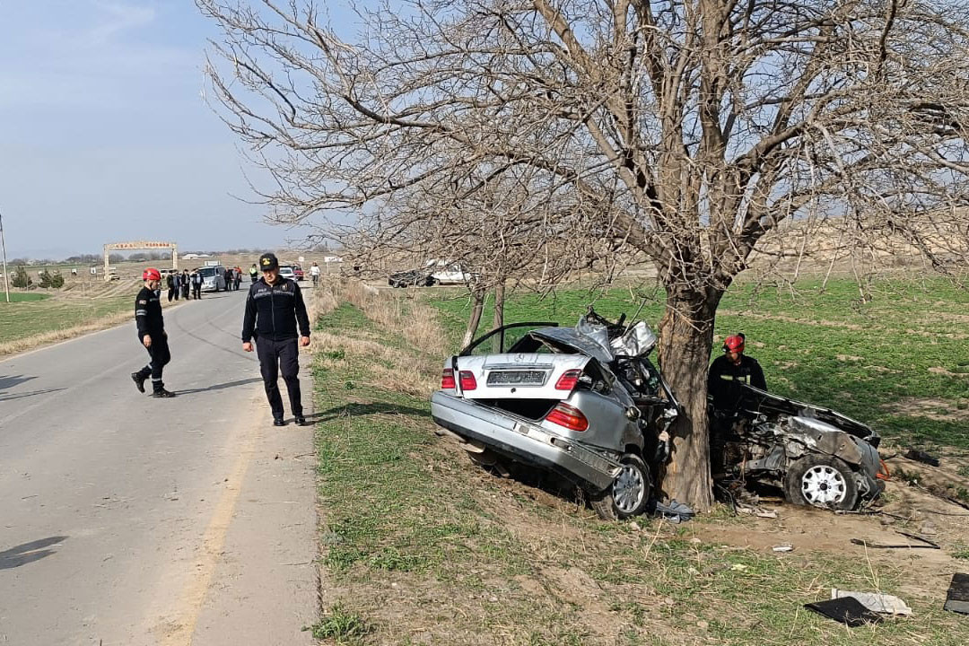 "Mercedes" markalı minik maşını idarəetmədən çıxaraq yol kənarındakı ağaca çırpılıb.