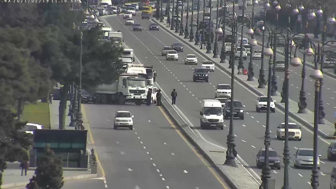 Lent.az xəbər verir ki, Heydər Əliyev prospekti köməkçi yolda, şəhər istiqamətində "Shagman" markalı yük avtomobili minik avtomobili ilə toqquşub. Bu səbəbdən nəqliyyat vasitələrinin hərəkətində sıxlıq müşahidə olunur.
