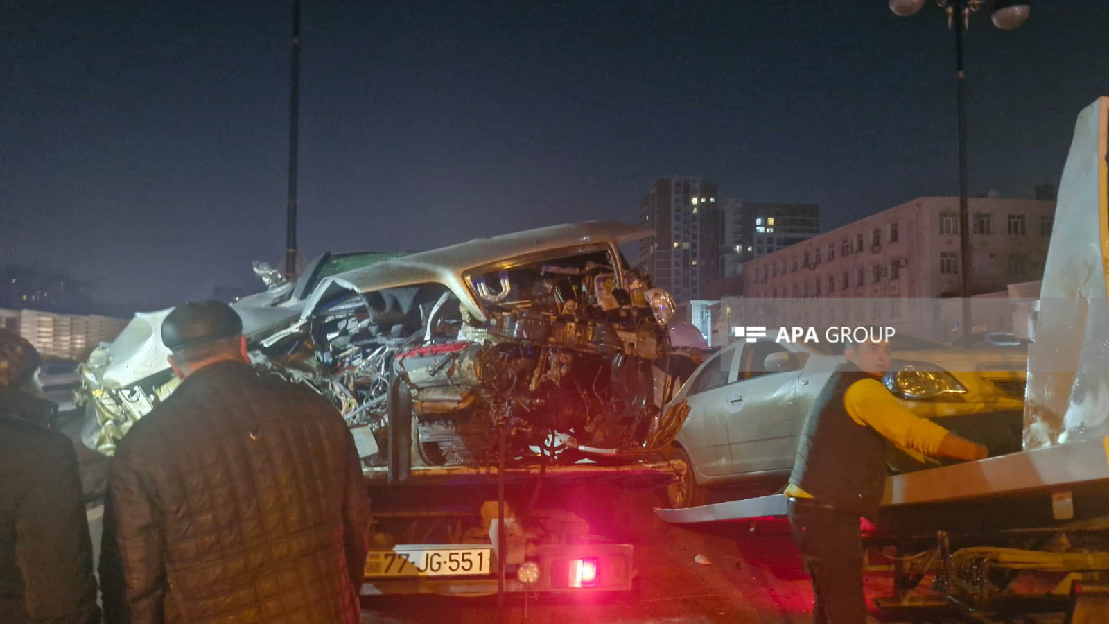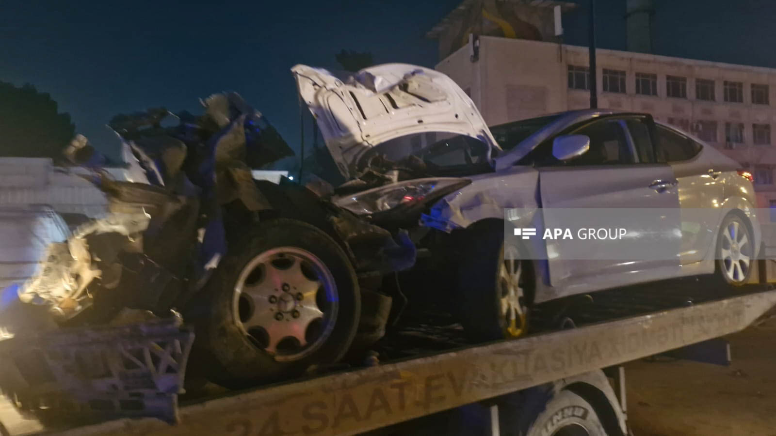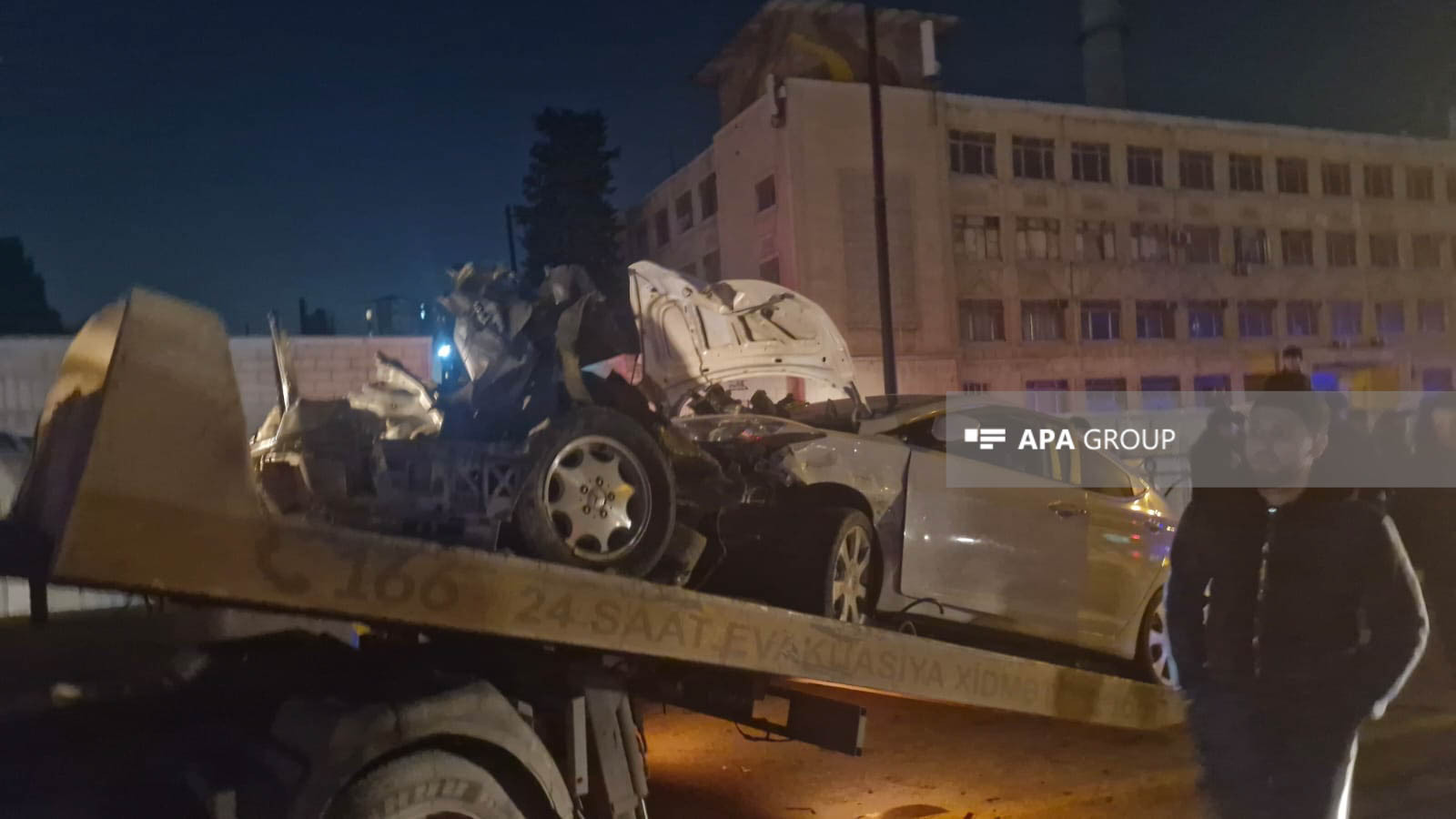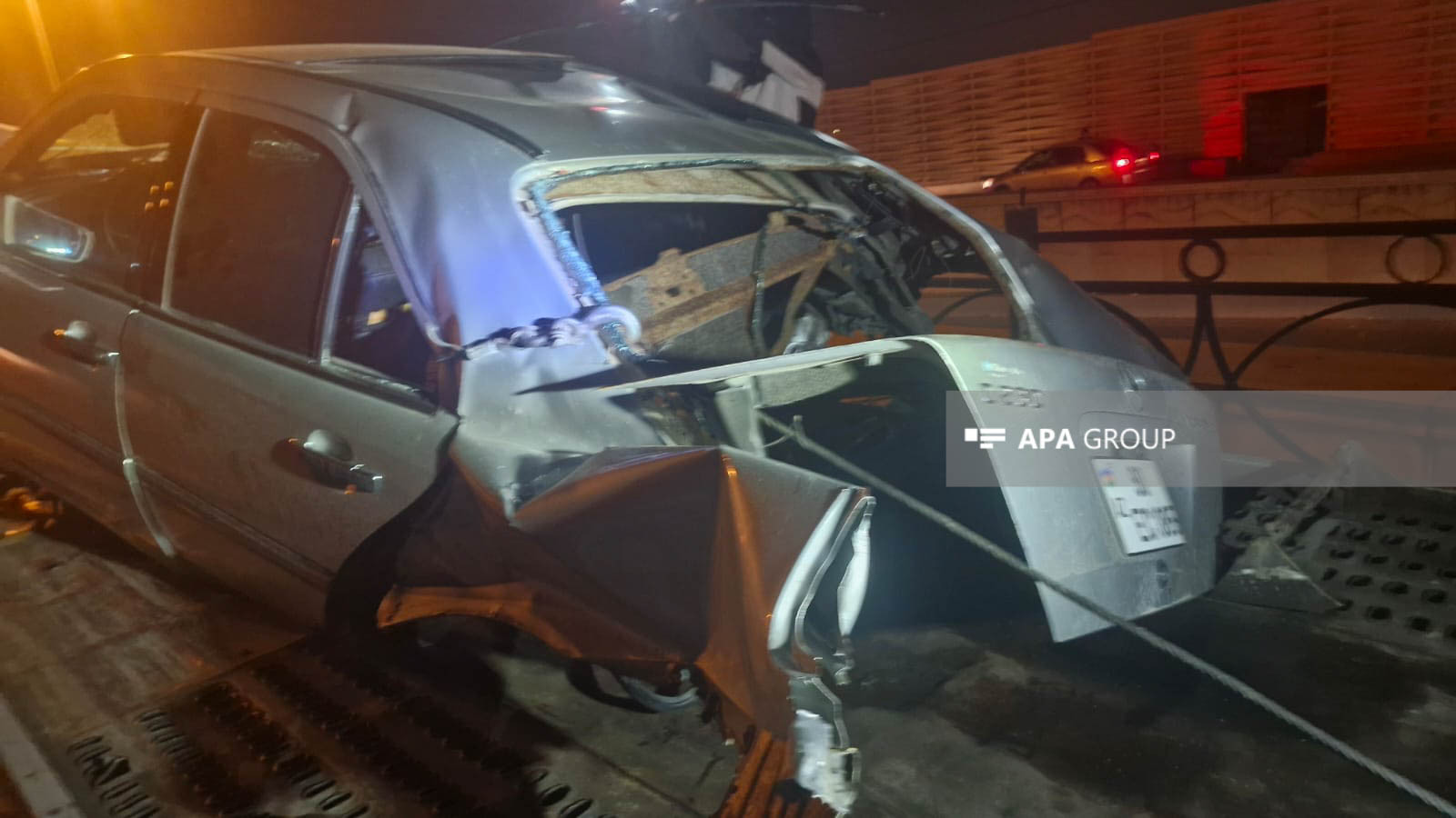 Nəticədə "Mercedes" markalı minik avtomobili yararsız vəziyyətə düşərək, hissələrə bölünüb. Qəza səbəbindən avtomobilin hissələri yola dağılıb, bir hissəsi isə Əbdülvahab Salamzadə küçəsinə düşüb.