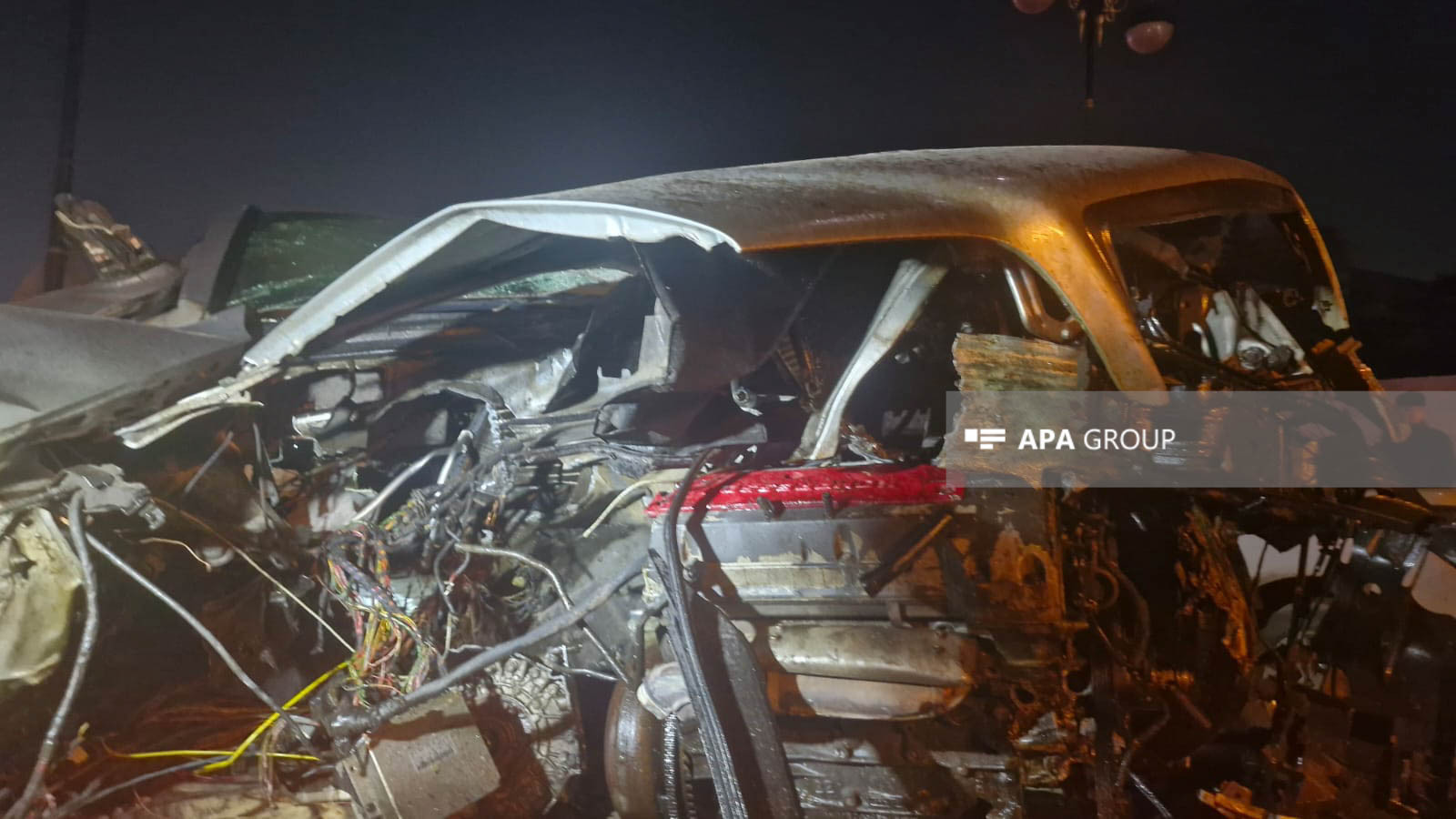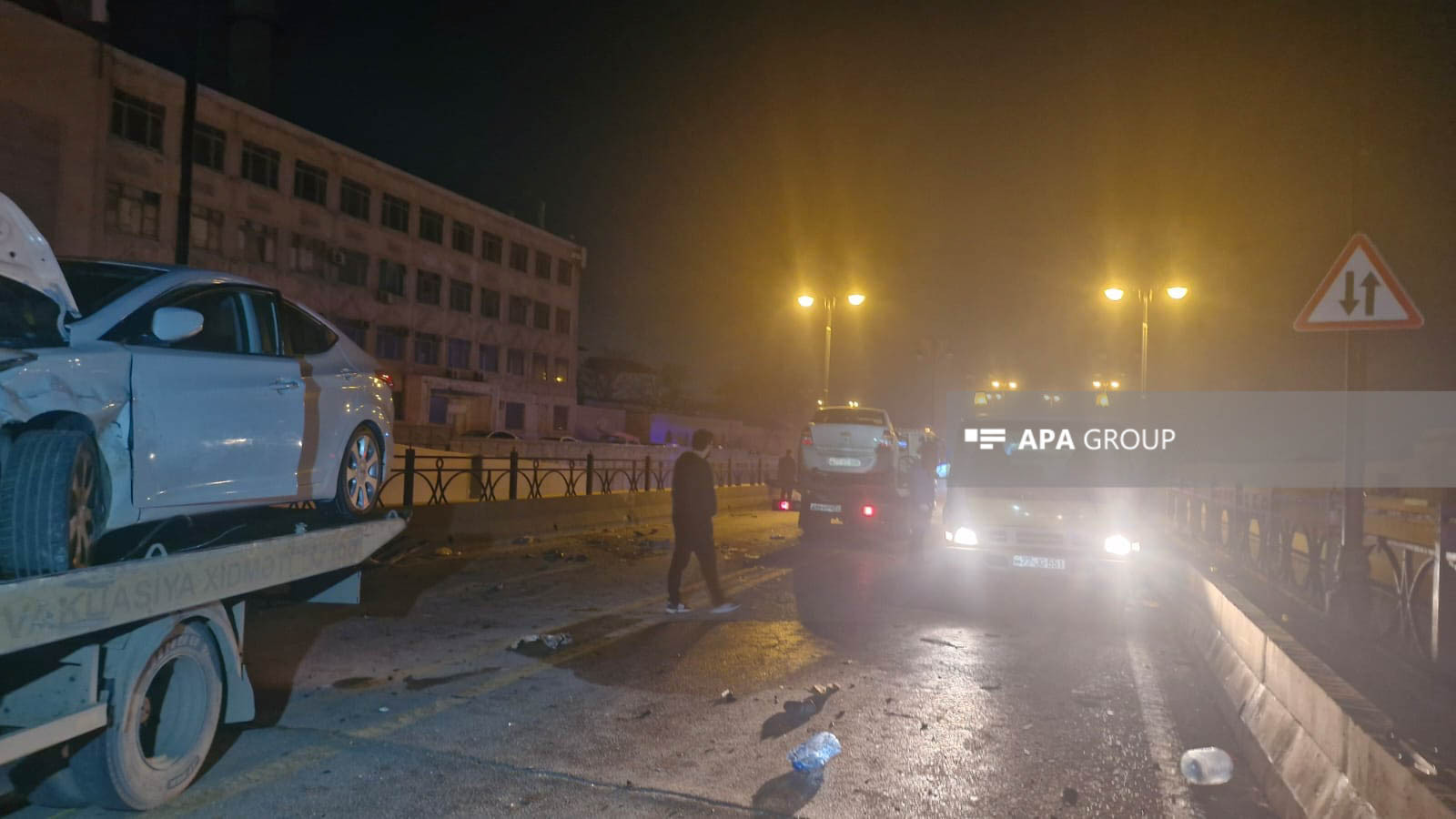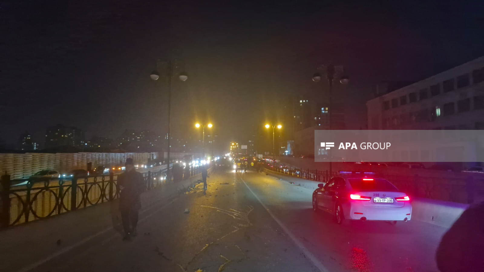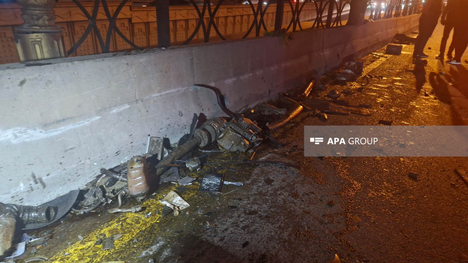Nəticədə "Mercedes" markalı minik avtomobili yararsız vəziyyətə düşərək, hissələrə bölünüb. Qəza səbəbindən avtomobilin hissələri yola dağılıb, bir hissəsi isə Əbdülvahab Salamzadə küçəsinə düşüb.