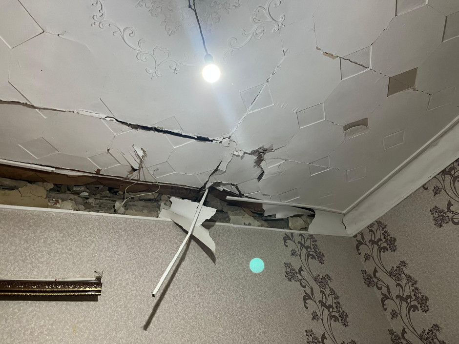Partlayış dalğasının təsirindən evə ciddi ziyan dəyib, 2-si uşaq olmaqla 5 nəfər xəsarət alıb.