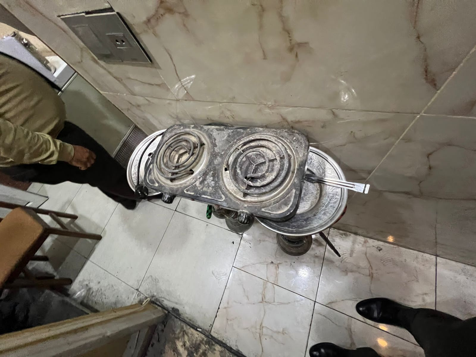- obyektin əsas zalında döşəmə hissə divar boyunca 40sm hündürlüyündə taxta diktlərdən istifadə olunaraq üzəri xalça ilə üzlənib ki, bu da əlavə yanğın təhlükəsi yaradır;