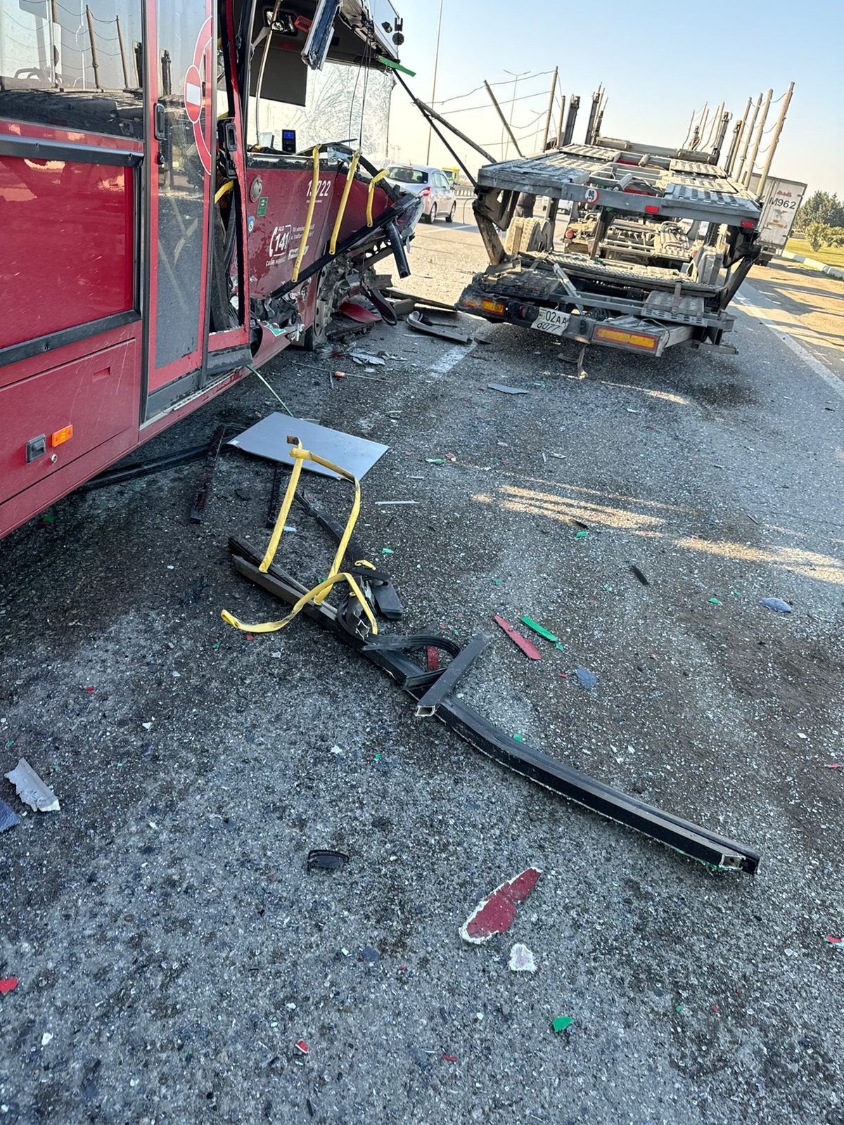 Baş Dövlət Yol Polisi İdarəsinin inspektoru polis baş leytenantı Elvin Hacıyev Lent.az-a bildirib ki,“Baku Bus” sərnişindaşıma avtobusu yolun kənarından hərəkətə başlayan Tacikistan dövlətinə məxsus “Volvo” markalı yük avtomobili ilə toqquşub. Nəticədə avtobusda olan 1 sərnişin ölüb, 2 nəfər xəsarət alıb.