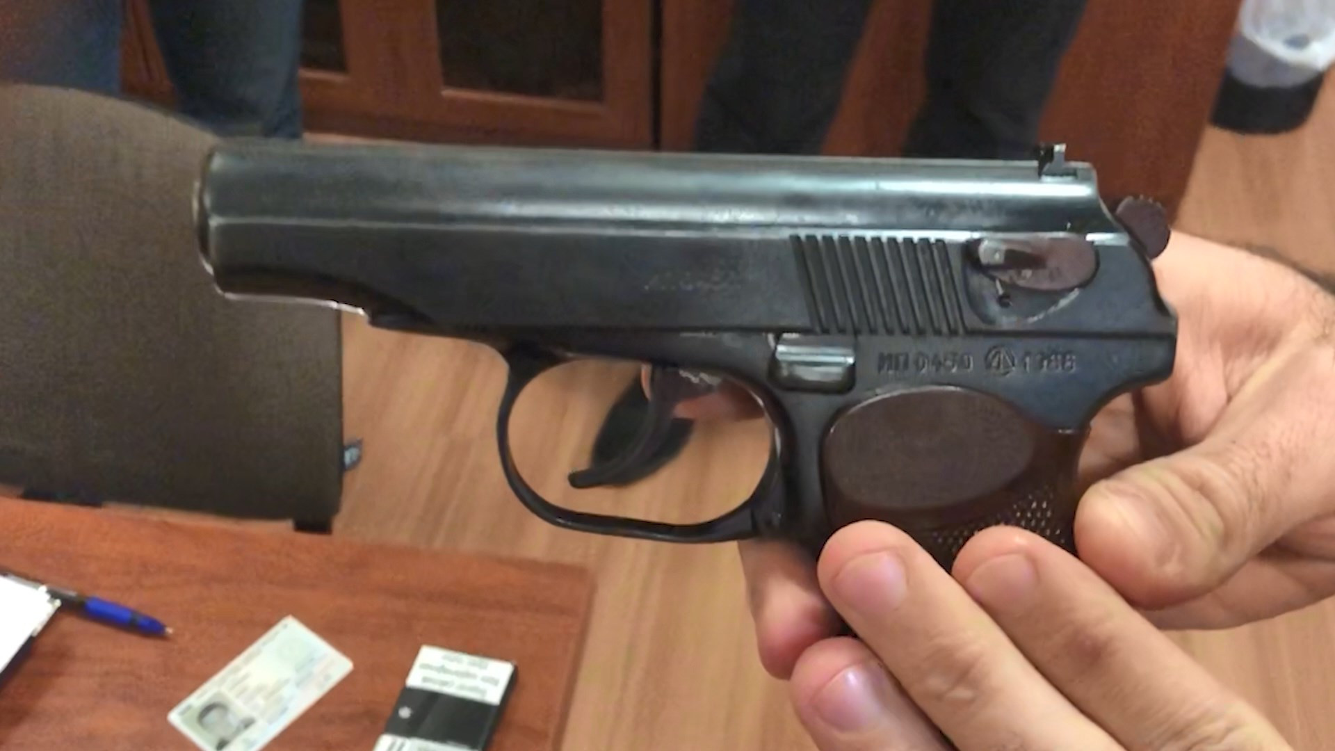 Növbəti əməliyyat zamanı isə vətəndaş Ramil İsmayılov saxlanılıb. Onun üzərindən bir ədəd "Makarov" markalı tapança,həmin silaha aid 1 ədəd səsboğucu, 1 ədəd daraq və 7 ədəd patron aşkar edilib.