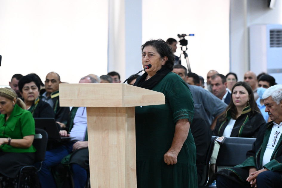 Zərərçəkmiş şəxs Aybəniz Orucova ifadə verərək, 1992-ci ildə Xocalı soyqırımından iki gün sonra əkiz oğlanları da daxil olmaqla bütün ailə üzvləri ilə birlikdə girov götürüldüyünü deyib.
