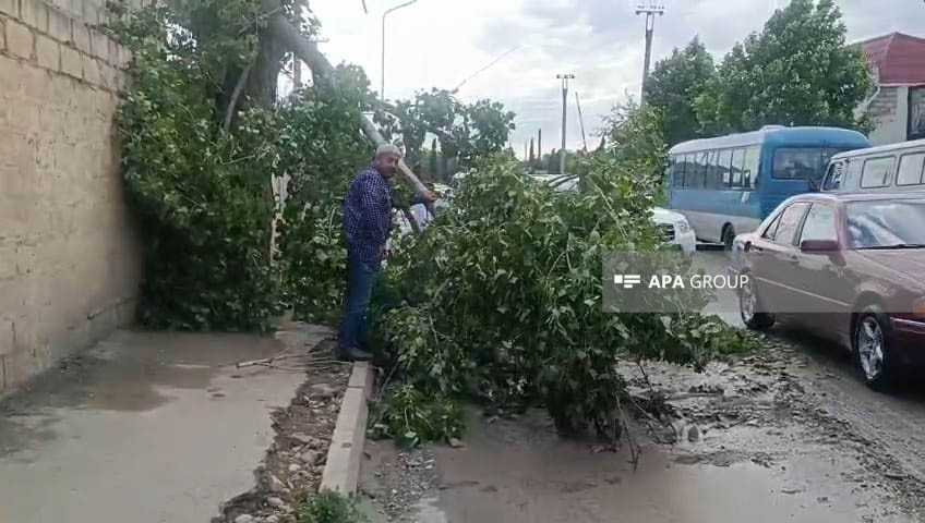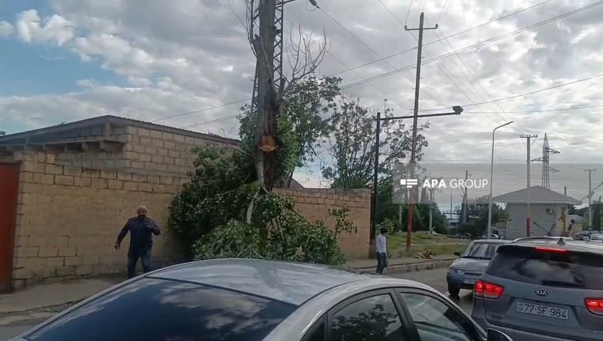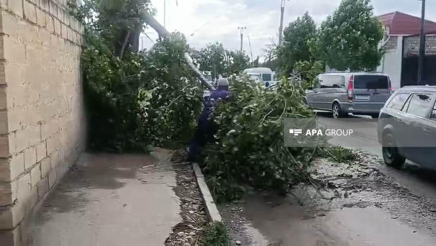 Lent.az APA-ya istinadən xəbər verir ki, təbii fəlakət nəticəsində şəhərin bir neçə yerində iri gövdəli ağaclar aşaraq yolda hərəkətə maneə yaradıb.