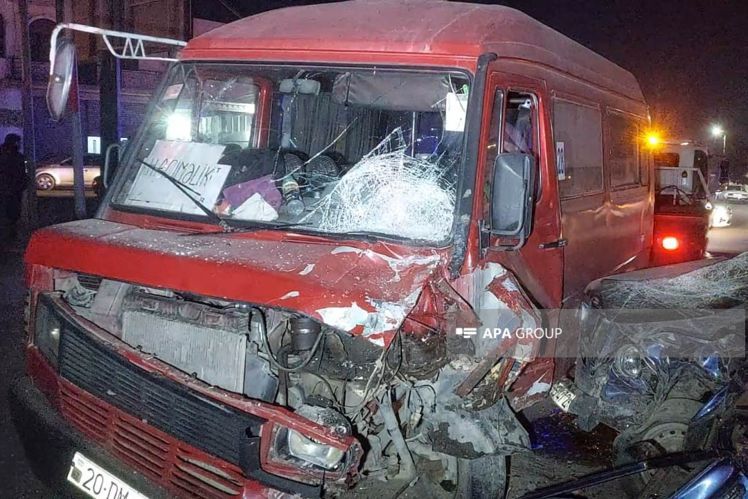 Hərəkətdə olan VAZ markalı minik maşını ilə "Mercedes" markalı mikroavtobus toqquşub.