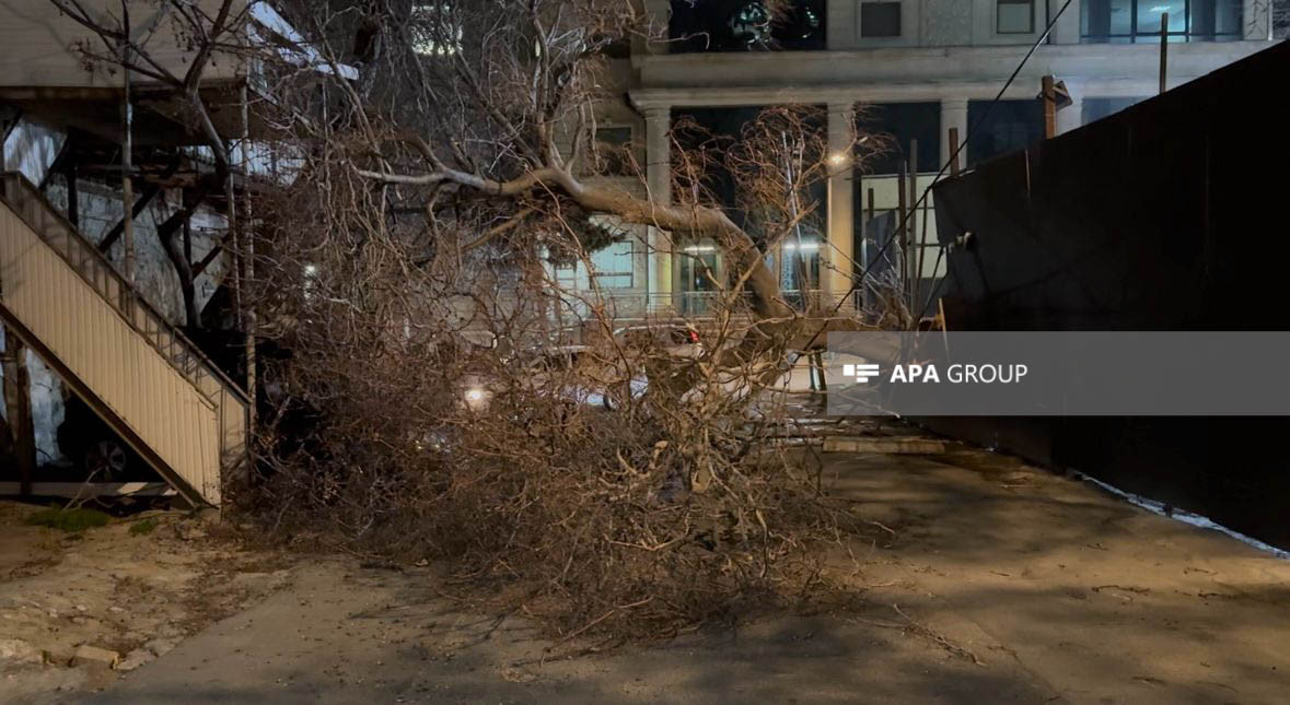 Təbii hadisə zamanı iri gövdəli ağac kökündən qoparaq ərazidəki elektrik naqillərinə ziyan vurub.