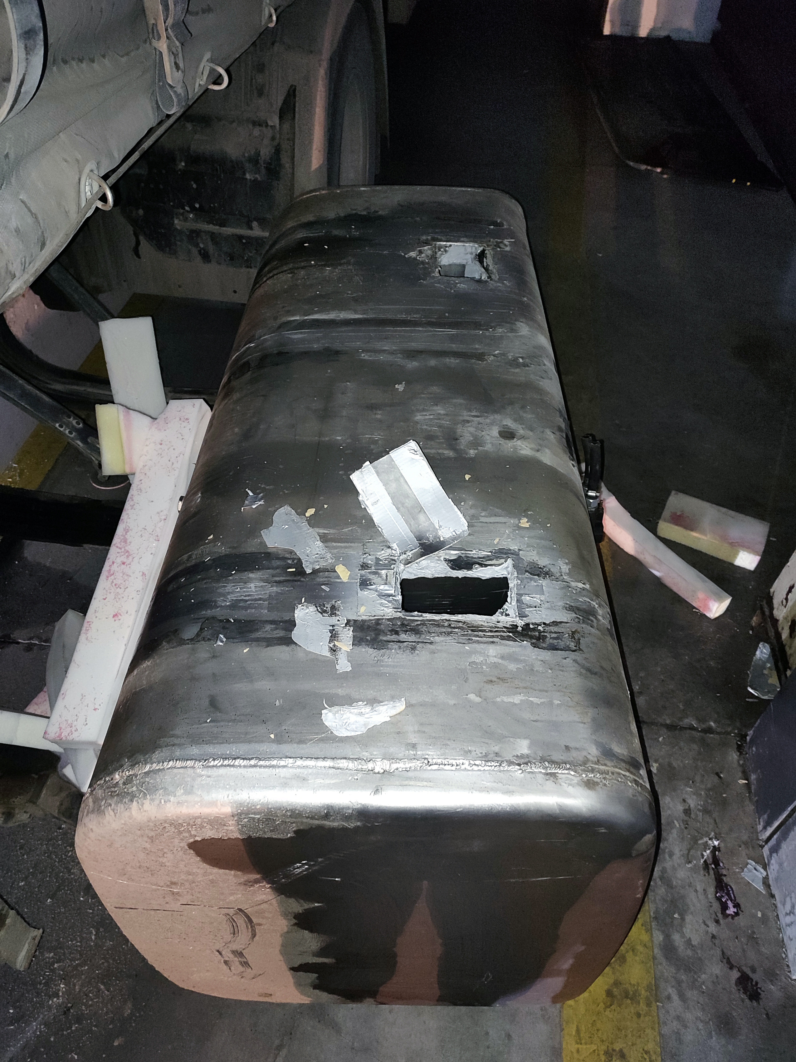 Yük nəqliyyat vasitəsi rentgen qurğusundan keçirilən zaman avtomobilin dartıcısının sol və sağ tərəfində eyni ölçülü yanacaq çənlərinin hər ikisinin içərisində şübhəli cizgilər müşahidə olunub.