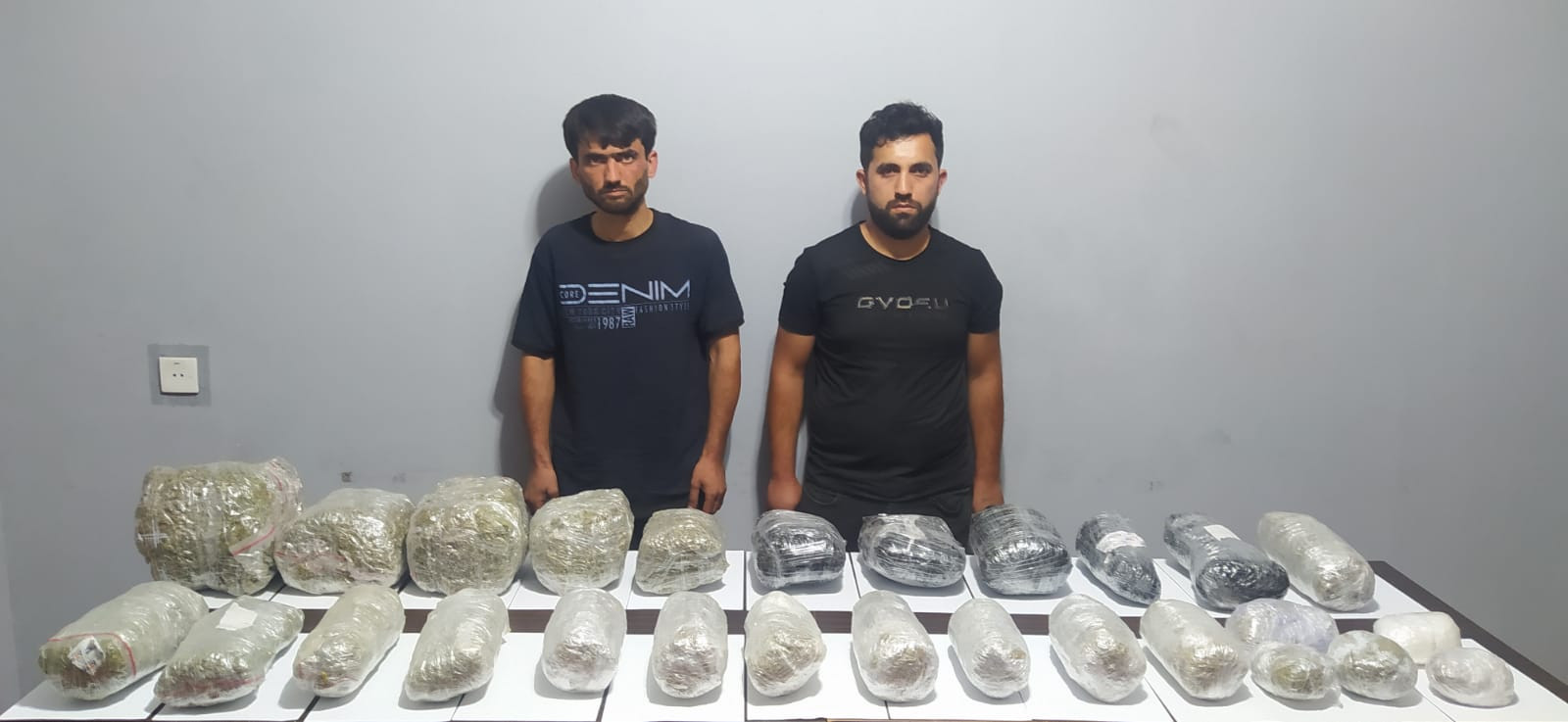 Sərhəd naryadının “Dayan” əmrinə tabe olmayan şübhəli şəxslər hadisə yerindən uzaqlaşmağa cəhd edərkən saxlanılıblar. Saxlanılan şəxslərin Abşeron rayon sakini 36 yaşlı Əlmanov Natiq Aydın oğlu və Şabran rayon sakini 51 yaşlı Rəsulov Tahir Zahir oğlu olması müəyyənləşdirilib. Üzərilərinə baxış keçirilərkən 1 ədəd bağlamanın içərisində təxmini çəkisi 3 kiloqram 300 qram marixuana və 800 ədəd metadon-40 həbi aşkar olunaraq götürülüb.