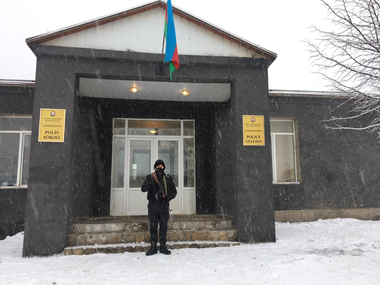 Kəlbəcərdə polis əməkdaşları Daxili Qoşunlarının hərbi qulluqçuları ilə birgə xidmət aparırlar.