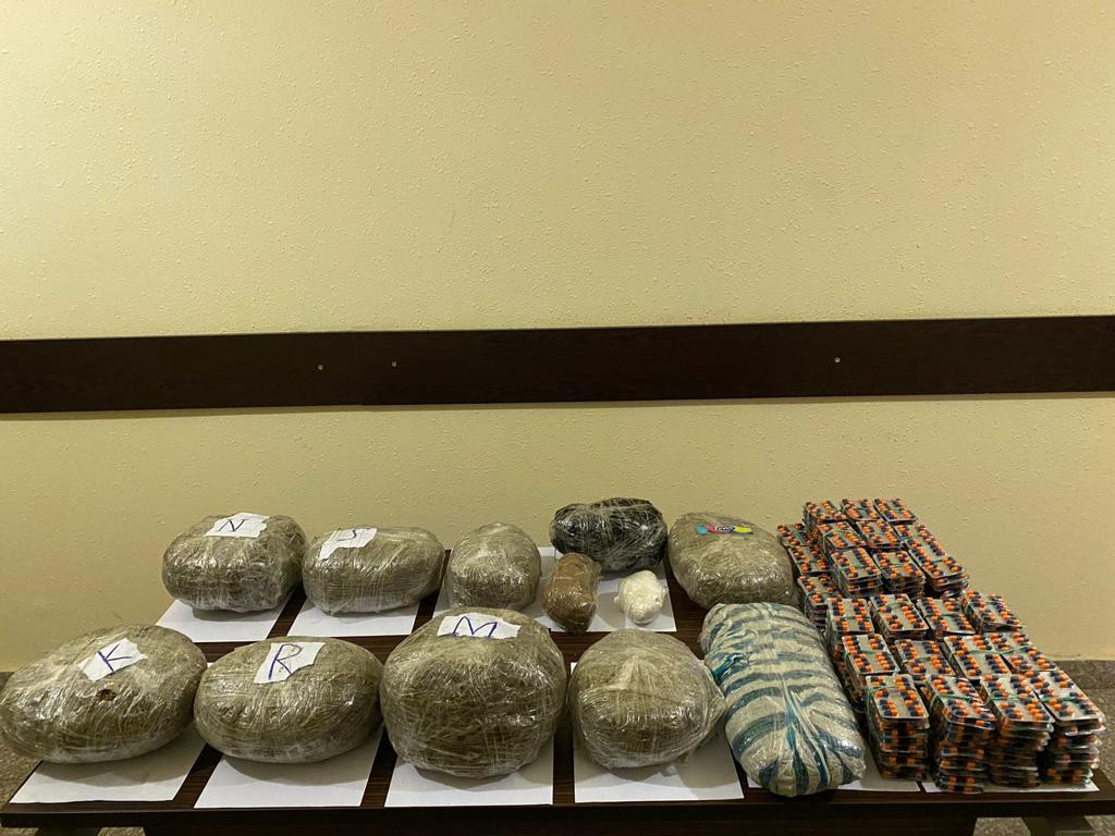 Saxlanılan şəxsin 27 yaşlı Bakı şəhər sakini Kərimov Ziyad Əhəd oğlu olması müəyyənləşdirilib. Əlindəki bağlamaya baxış zamanı içərisində ümumi çəkisi 8 kiloqram 500 qram narkotik maddəyə oxşar vasitə (7300 qram marixuana, 1000 qram heroin, 200 qram metamfetamin) və 8370 ədəd psixotrop tərkibli preqobalin həbləri aşkar olunaraq götürülüb.