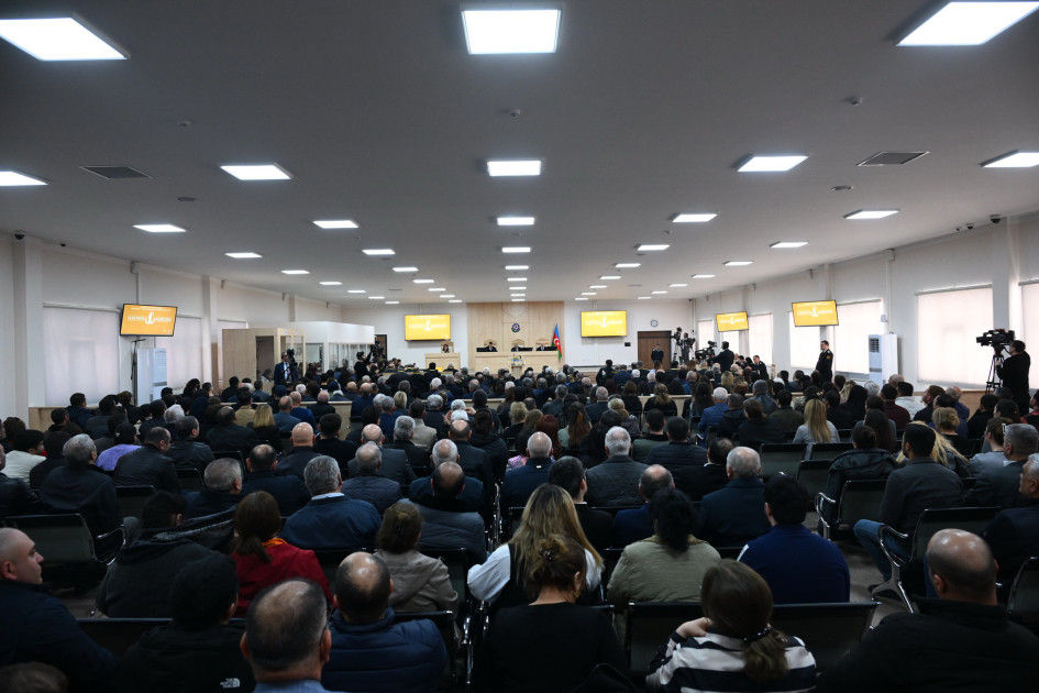 Məhkəmənin baxış iclasında təqsirləndirilən şəxslər, onların müdafiəçiləri, zərərçəkmiş şəxslərin bir qismi, onların hüquqi varisləri və nümayəndələri, həmçinin dövlət ittihamını müdafiə edən prokurorlar iştirak ediblər.