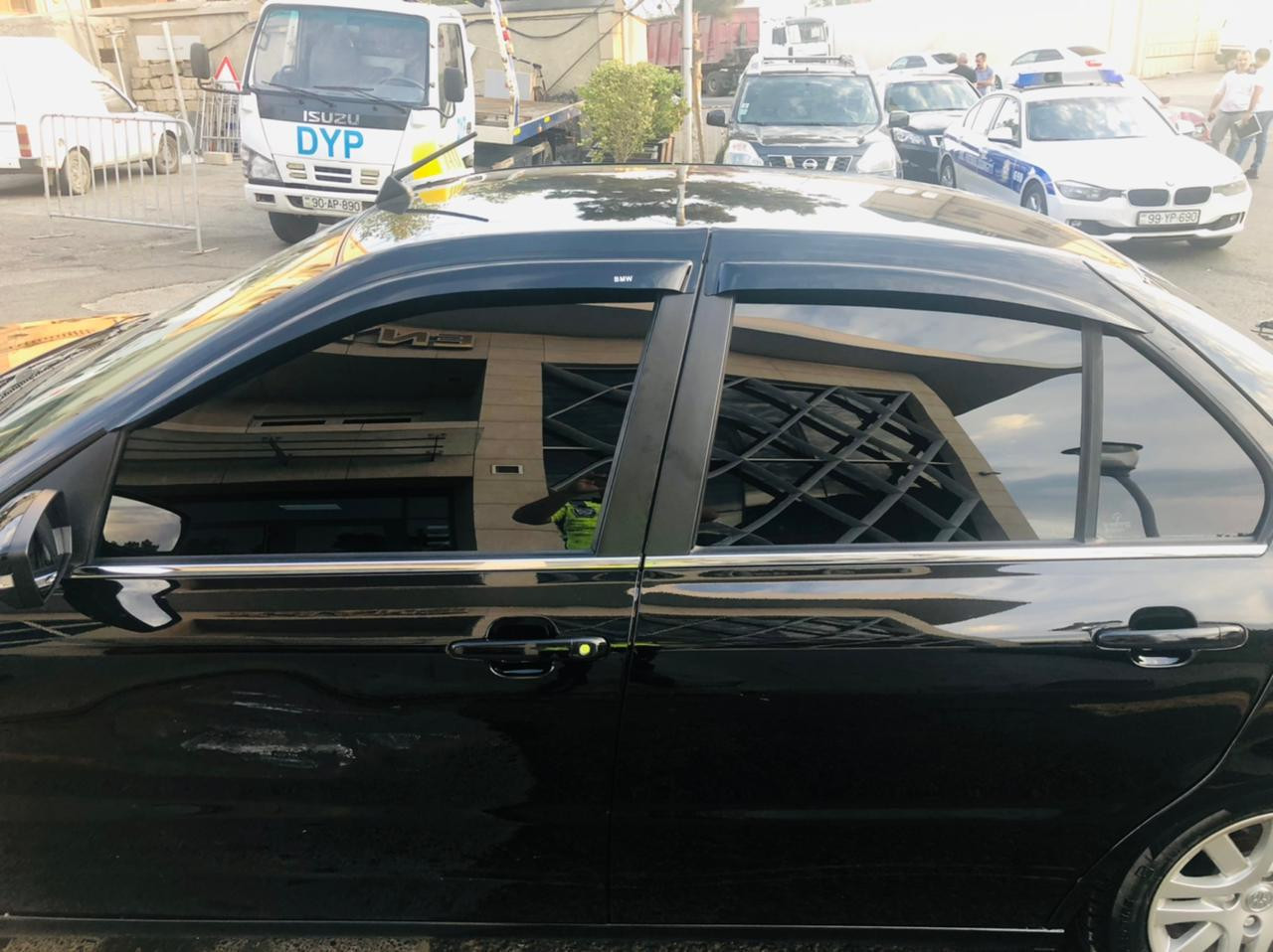 Arxa şüşəsinə yazı yazılan avtomobilin sürücüsü saxlanılıb.