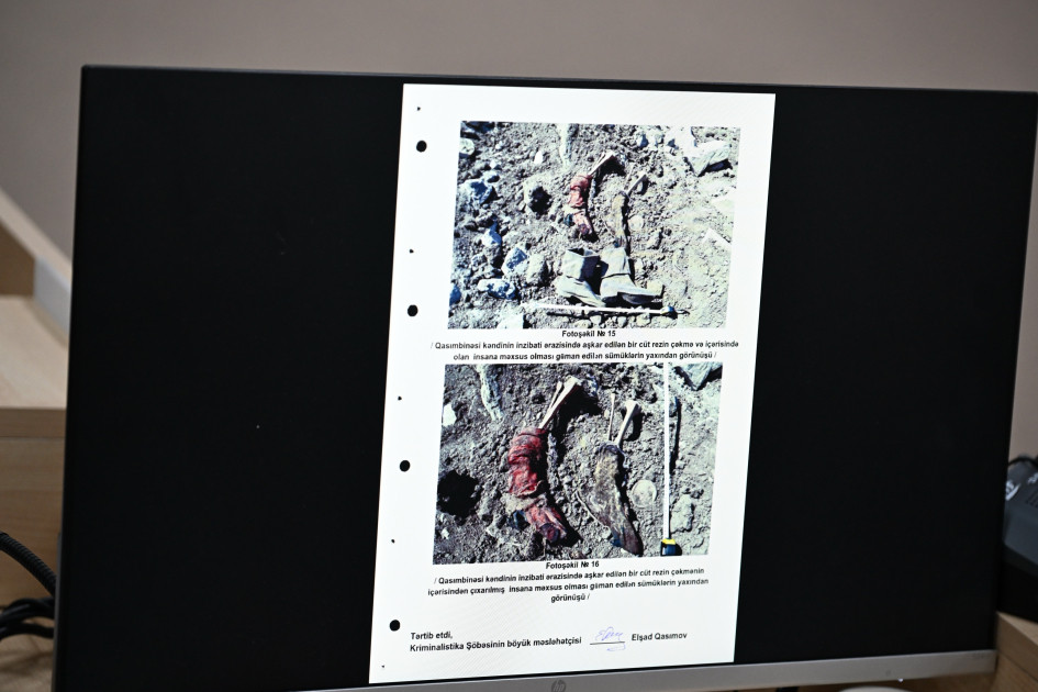Daha sonra Baş prokurorun böyük köməkçisi Vüsal Əliyev Kəlbəcər rayonunun Başlıbel kəndində törədilmiş qətliamla bağlı protokolları elan edib.