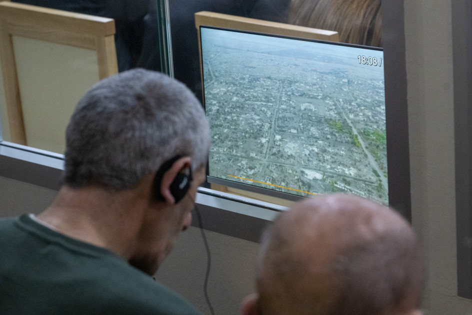 Sonra dövlət ittihamını müdafiə edən prokuror tərəfindən Azərbaycanın rayon, şəhər, qəsəbə və kəndlərinin Ermənistan tərəfindən işğalından sonra dağıdılmasını, viran qoyulmasını, mədəni, tarixi, dini abidələrin məhvini, infrastrukturun, mülki əmlakın, qəbiristanlıqların məhv olunmasını əks etdirən foto və video materiallar təqdim olunub.