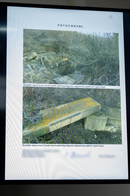Məhkəmədə Baş prokurorun xüsusi tapşırıqlar üzrə köməkçisi Tuqay Rəhimli tərəfindən Azərbaycanın vaxtilə Ermənistan tərəfindən işğal olunmuş suveren ərazilərində mədəni irsin məhv edilməsini əks etdirən sənədlərin tədqiqinə başlanılıb.