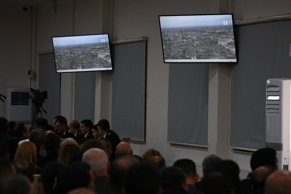 İclasda, həmçinin işğaldan azad edilmiş rayon, şəhər və kəndlərə baxış keçirilməsinə dair protokollar, həmin protokollara əlavə edilmiş foto və video görüntülər nümayiş etdirilib.