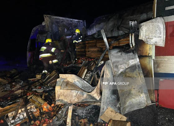 Belə ki, Hacıqabul rayon sakini, 1979-cu il təvəllüdlü Marif Muxtar oğlu Bayramovun idarə etdiyi pomidorla yüklənmiş "Mercedes" markalı yük avtomobili anidən alışıb.