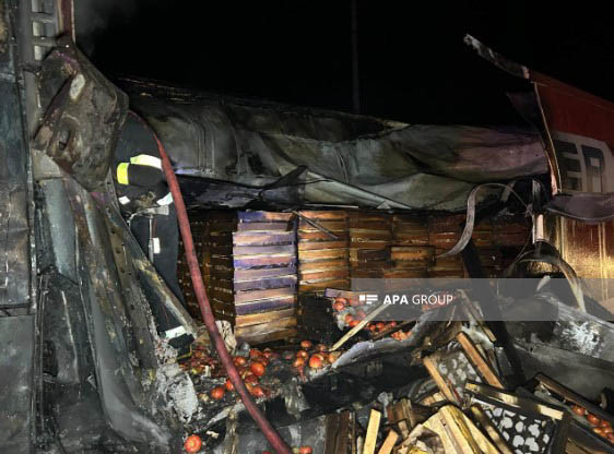 Hadisə zamanı avtomobildə olan 21 ton pomidorun 4 tonu yanaraq yararsız hala düşüb. Yükün qalan hissəsi və yük avtomobili yanğından mühafizə olunub.