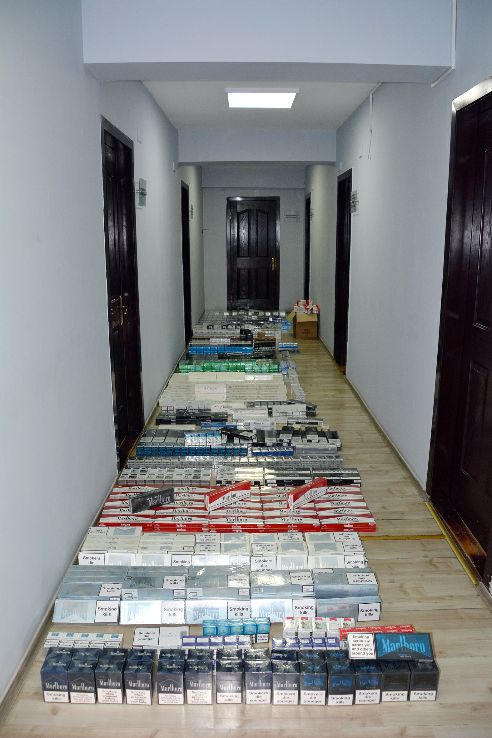 Bununla əlaqədar yaradılan əməliyyat qrupu qeyd edilən ünvanda məhkəmənin qərarına əsasən axtarış həyata keçirib. Axtarış zamanı evin mətbəxində Azərbaycana məxsus aksiz markası ilə markalanmamış müxtəlif adda cəmi 128.300 ədəd siqaret aşkar olunub.