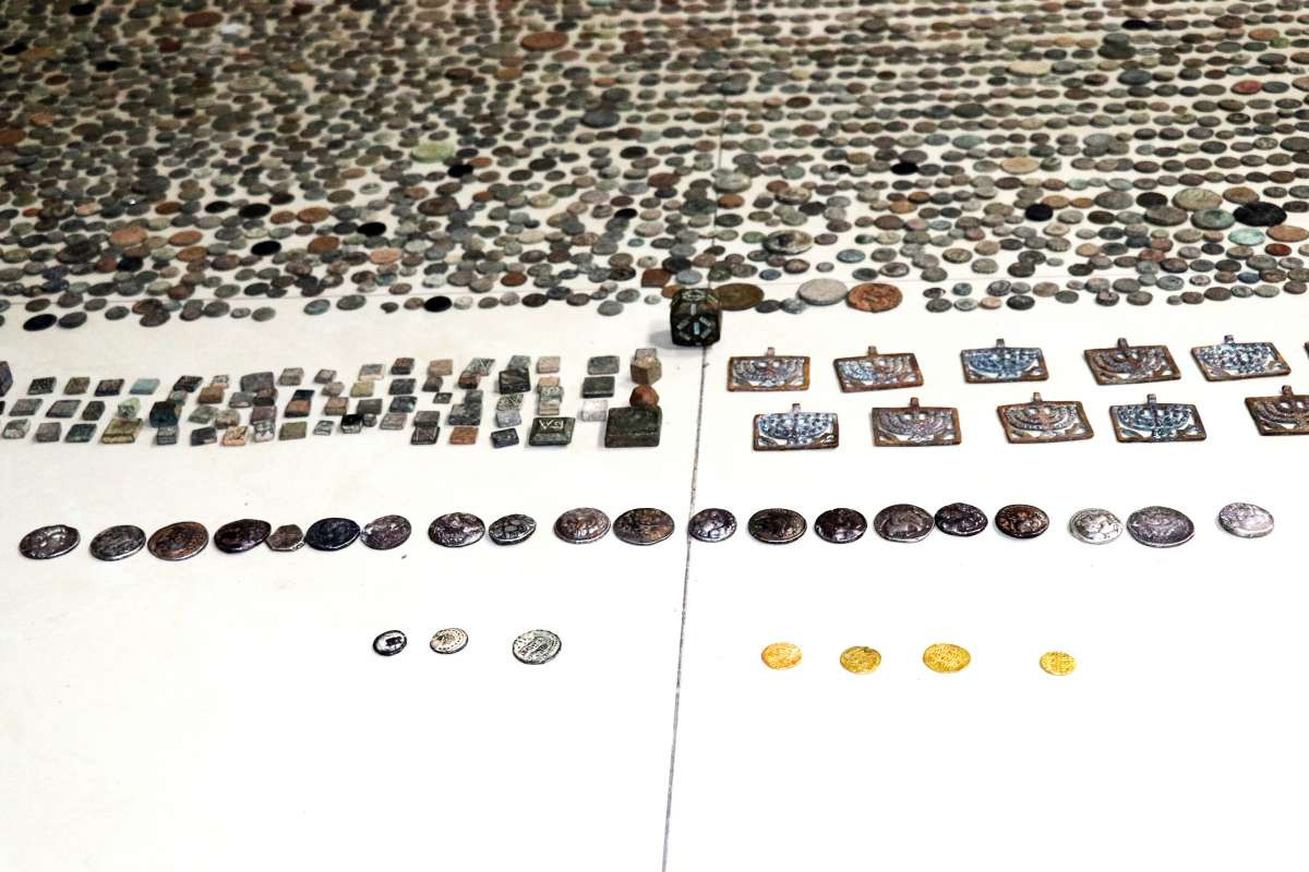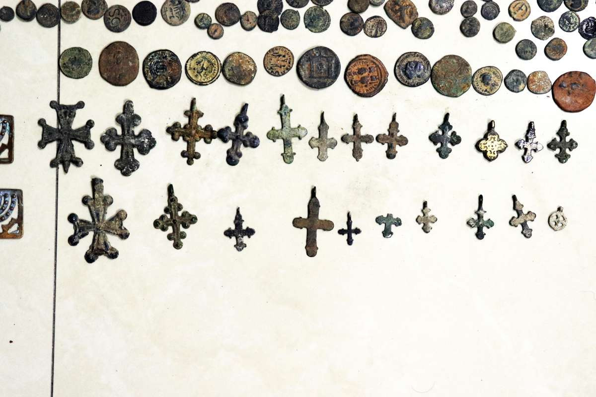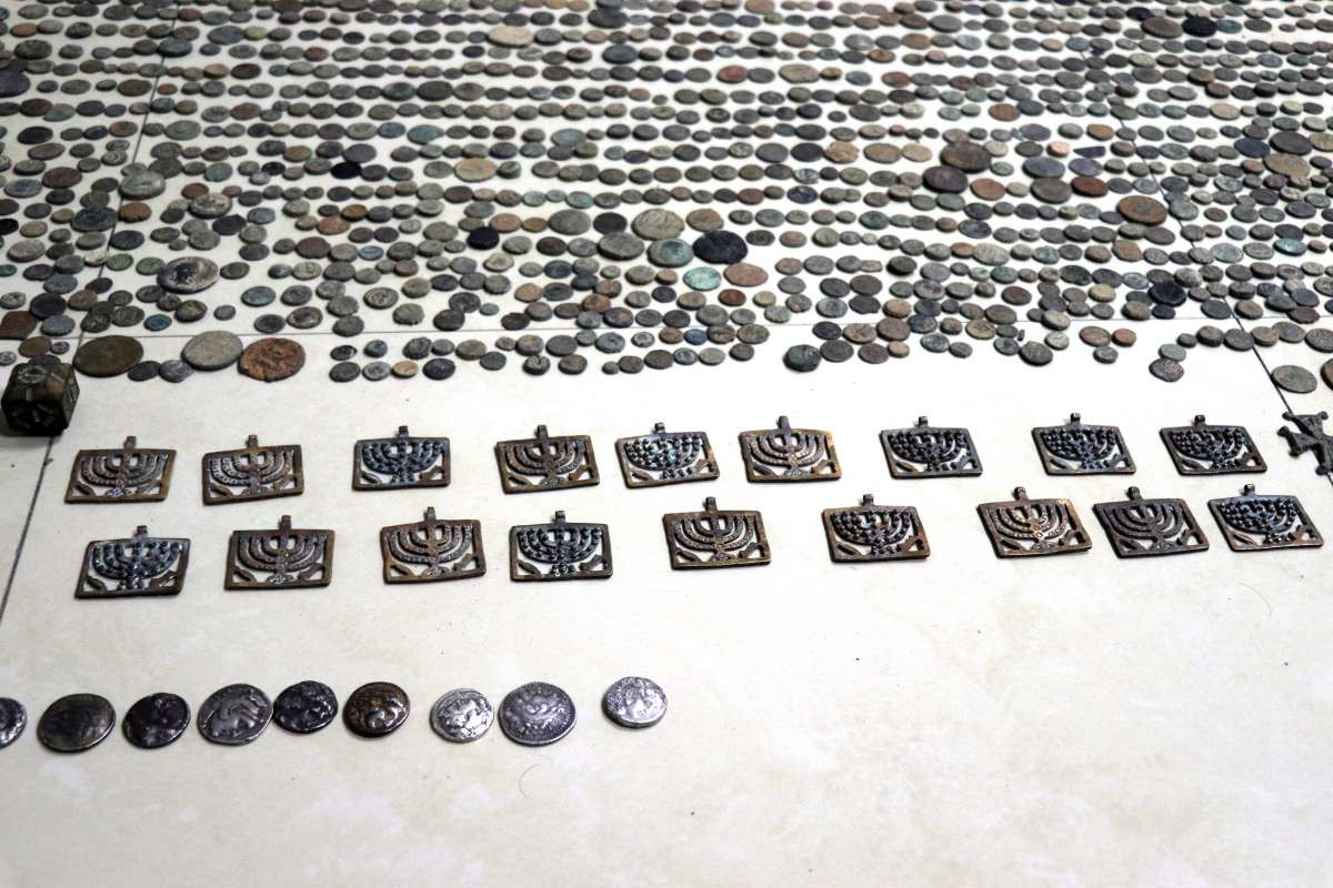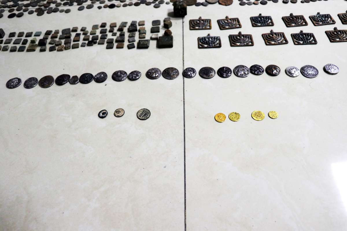 Həmin bağlamalara baxış nəticəsində isə üzərində müxtəlif simvol və heroqlif olan 4 ədəd qızıl sikkə, üzərində müxtəlif simvol və heroqlif olan 20 ədəd gümüş sikkə, bürüncdən hazırlanan - üzərində şamdan simvolu olan 18 ədəd kulon, eləcə də xaça bənzər 22 ədəd kulon, üzərində simvol olan kubşəkilli 5 ədəd predmet, üzərində simvol olan 4 ədəd çoxbucaqlı predmet, üzərində simvol olan 1 ədəd səkkizbucaqlı predmet, üzərində müxtəlif simvollar olan 280 ədəd dördbucaqlı predmet və nəhayət, üzərində müxtəlif simvol və heroqlif olan 10.800 ədəd dairəvi şəkilli mis aşkara çıxarılıb.