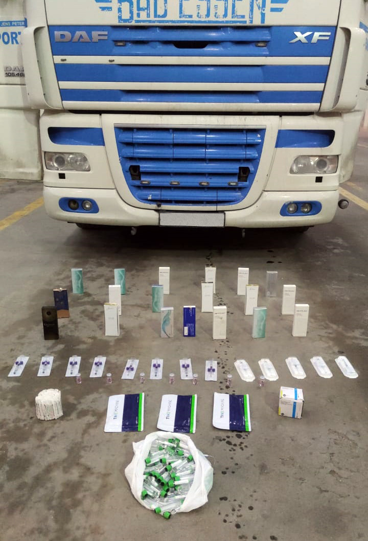 Yoxlama zamanı nəqliyyat vasitələrinin gizli saxlanc yerlərində gömrük nəzarətindən gizlədilən və bəyan edilməyən 7200 kapsul və 43 ədəd müxtəlif adda dərman preparatları, 199 ədəd ineksiya üçün iynə, 94 ədəd vakum test borusu aşkar edilib.