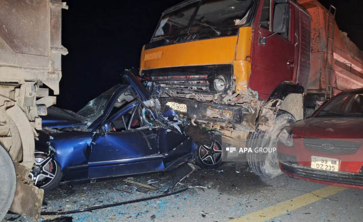 İlkin məlumata görə, 13 avtomobilin toqquşması nəticəsində 2 nəfər ölüb, 10-dan yuxarı şəxs xəsarət alıb.