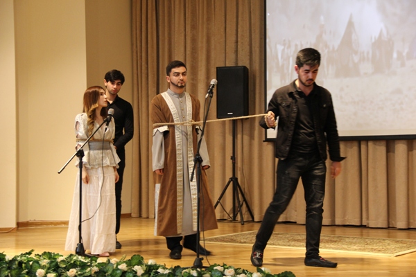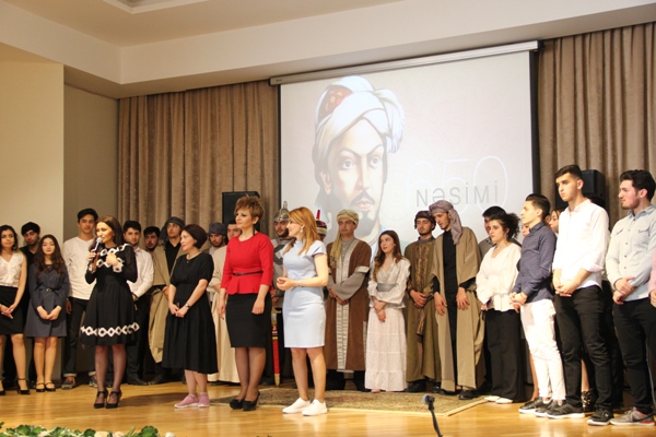 Tələbələr “Nəsimi” filmindən bir parçanı canlandırıblar. Gənclərin yaratdığı bu kompozisiya tədbir iştirakçılarının böyük marağına səbəb olub. Bundan sonra tələbələr dahi şairin şeirlərinə bəstələnən mahnılar ifa ediblər. Tədbiri yaddaqalan və mötəbər edən başqa bir məqam o olub ki, tələbələr bir neçə dildə - rus, fransız, fars və ingilis dillərində Nəsiminin müxtəlif şeirlərini səsləndiriblər.