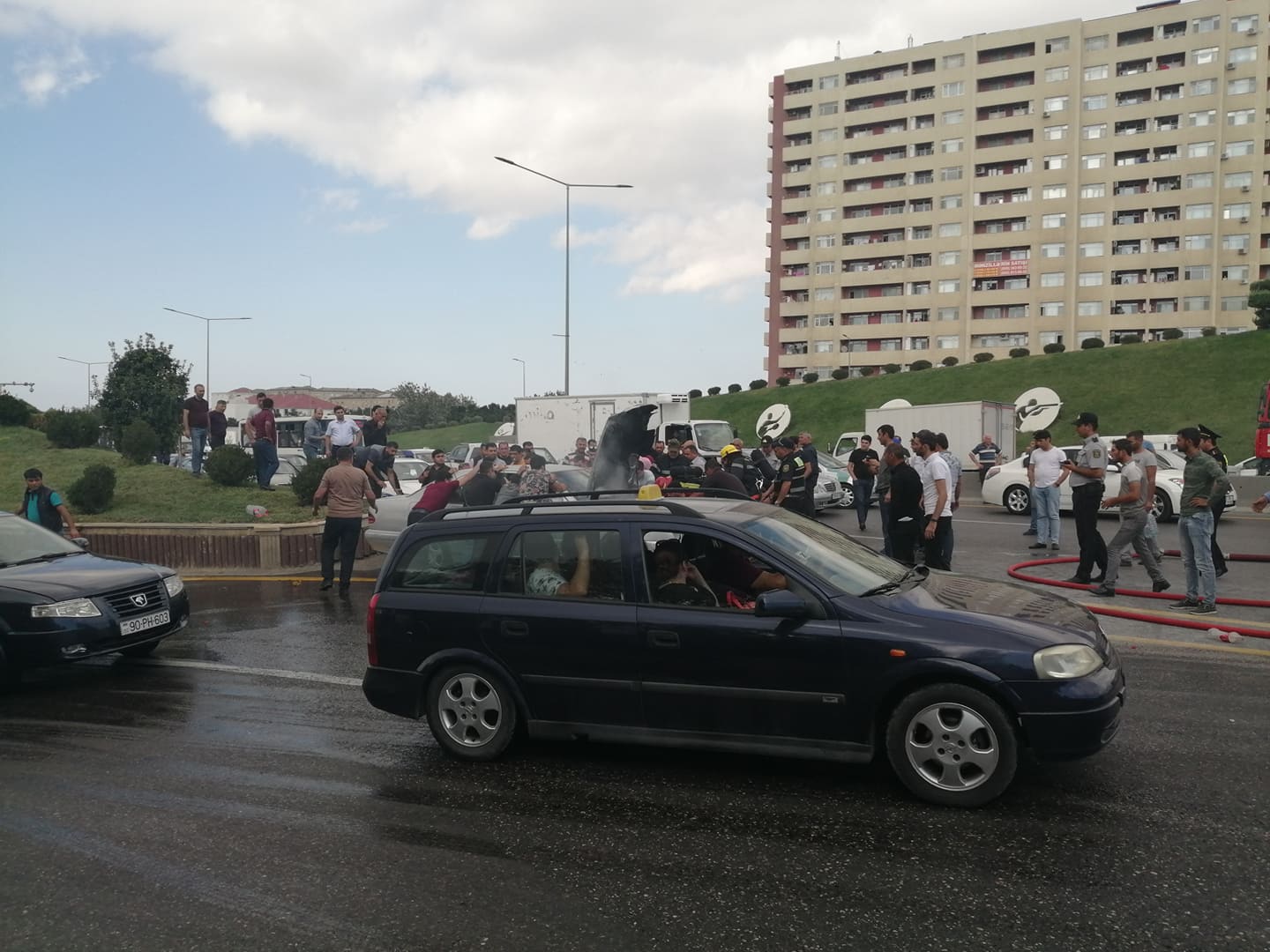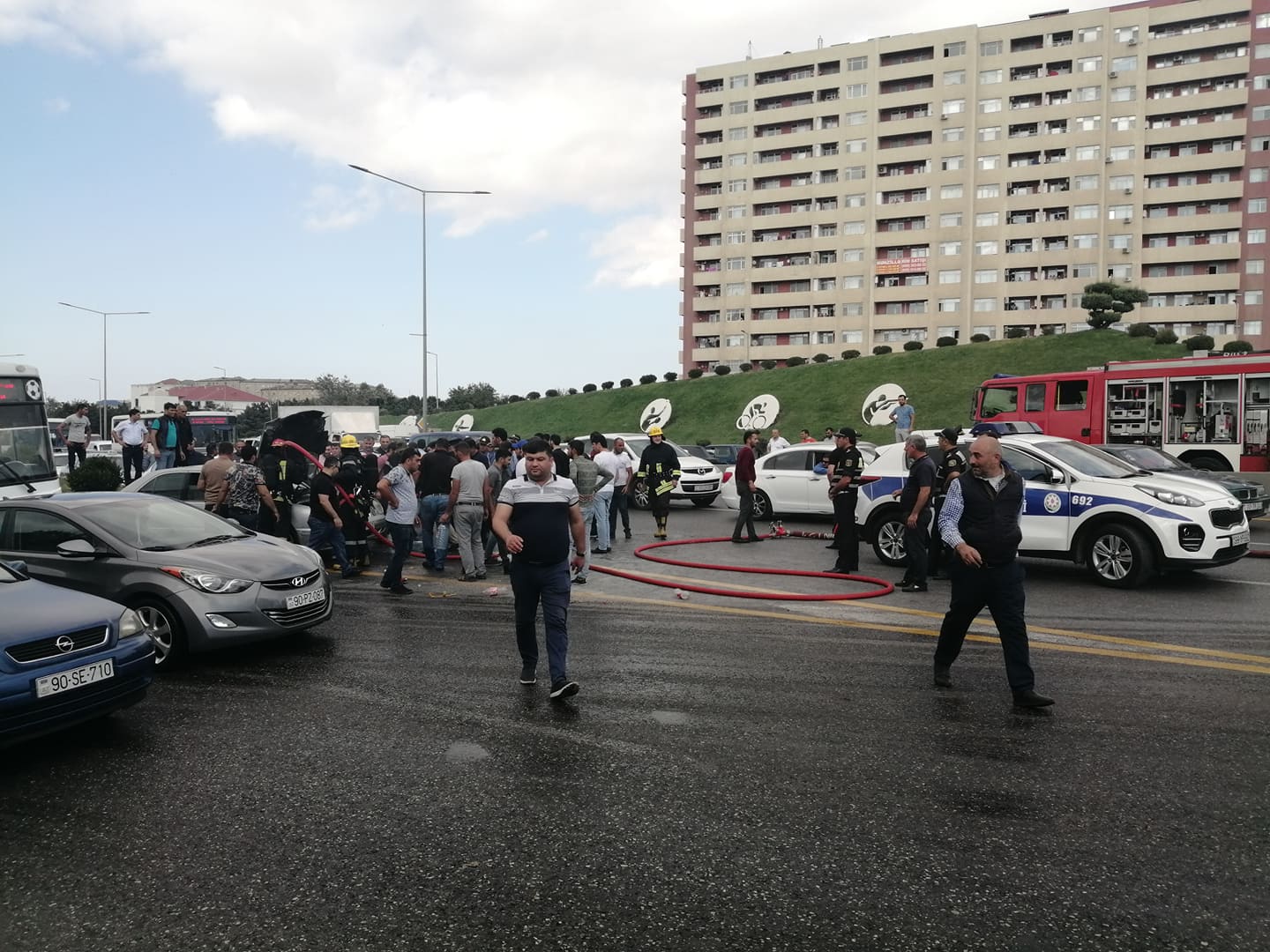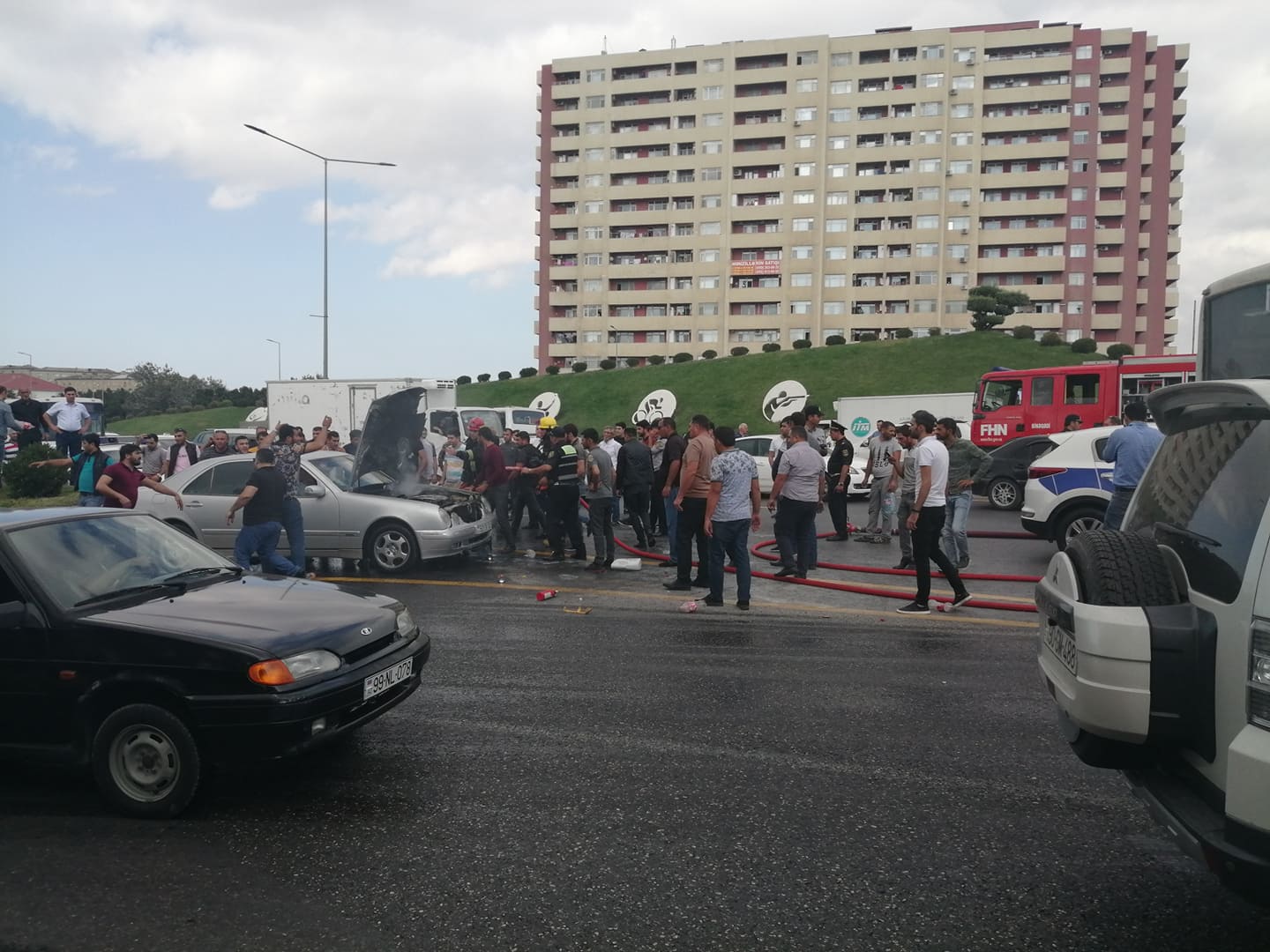 Bakı Beynəlxalq Avtovağzal Kompleksinin yaxınlığında Məmmədov Elxana məxsus 50- CK-141 dövlət qeydiyyat nişanlı “Mercedes” markalı avtomobil yanmağa başlayıb. Lent.az-ın məlumatına görə, cihazlar lövhəsində nasazlıq işığının yandığını görən sürücü dərhal avtomobili yolun kənarında saxlayıb. Hadisə yerinə Binəqədi Rayonu Yol Polis Şöbəsinin və FHN Dövlət Yanğından Mühafizə Xidmətinin əməkdaşları cəlb olunub. Görülən tədbirlər nəticəsində avtomobil söndürülüb. Avtomobilin yanması ilə bağlı yolda nəqliyyatın fəaliyyətində çətinliklər yaranıb. Lent.az hadisə ilə bağlı görüntüləri təqdim edir: