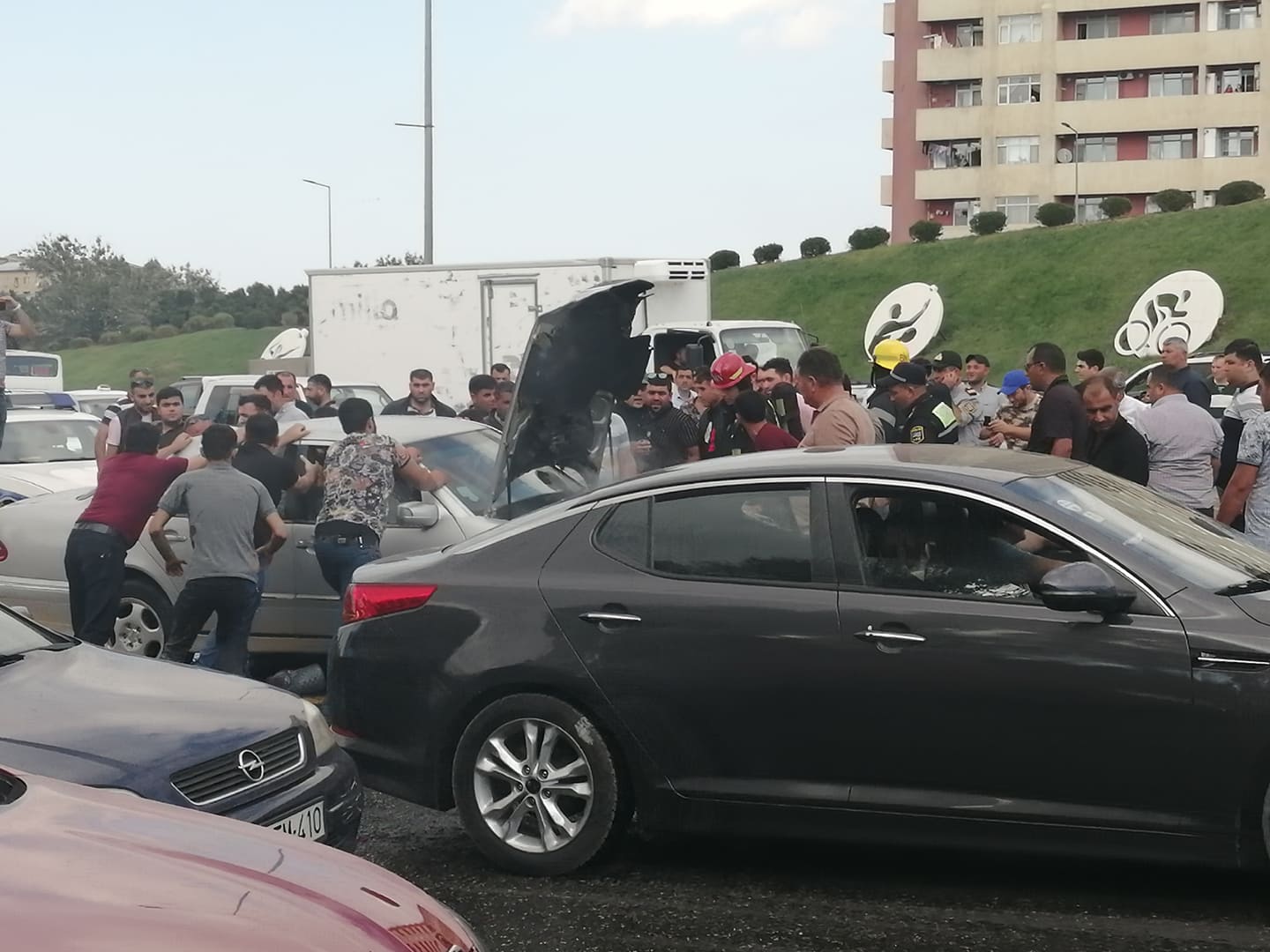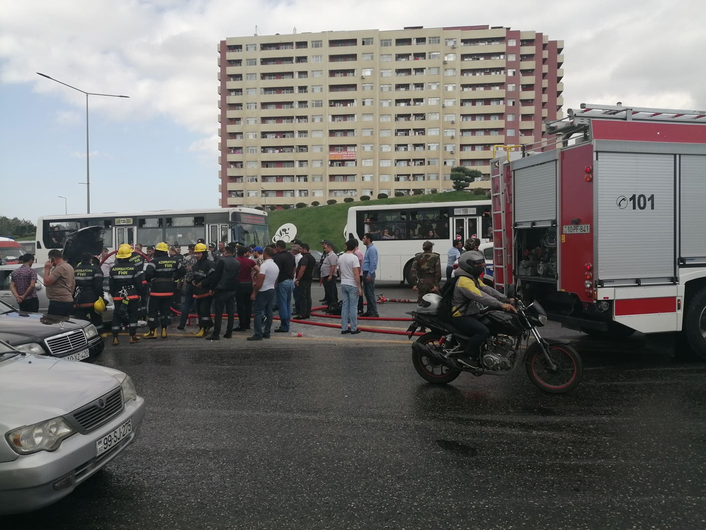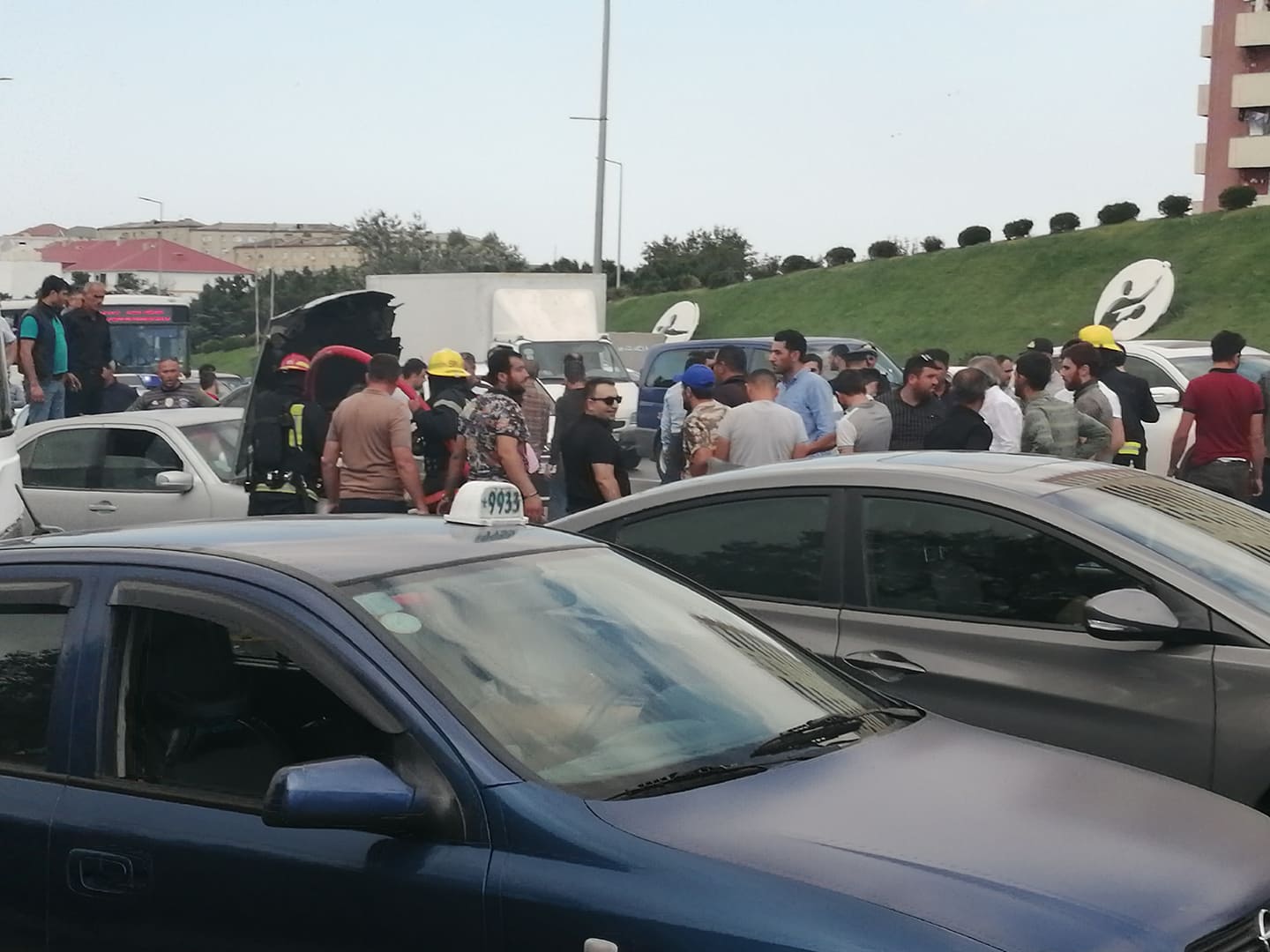 Bakı Beynəlxalq Avtovağzal Kompleksinin yaxınlığında Məmmədov Elxana məxsus 50- CK-141 dövlət qeydiyyat nişanlı “Mercedes” markalı avtomobil yanmağa başlayıb. Lent.az-ın məlumatına görə, cihazlar lövhəsində nasazlıq işığının yandığını görən sürücü dərhal avtomobili yolun kənarında saxlayıb. Hadisə yerinə Binəqədi Rayonu Yol Polis Şöbəsinin və FHN Dövlət Yanğından Mühafizə Xidmətinin əməkdaşları cəlb olunub. Görülən tədbirlər nəticəsində avtomobil söndürülüb. Avtomobilin yanması ilə bağlı yolda nəqliyyatın fəaliyyətində çətinliklər yaranıb. Lent.az hadisə ilə bağlı görüntüləri təqdim edir: