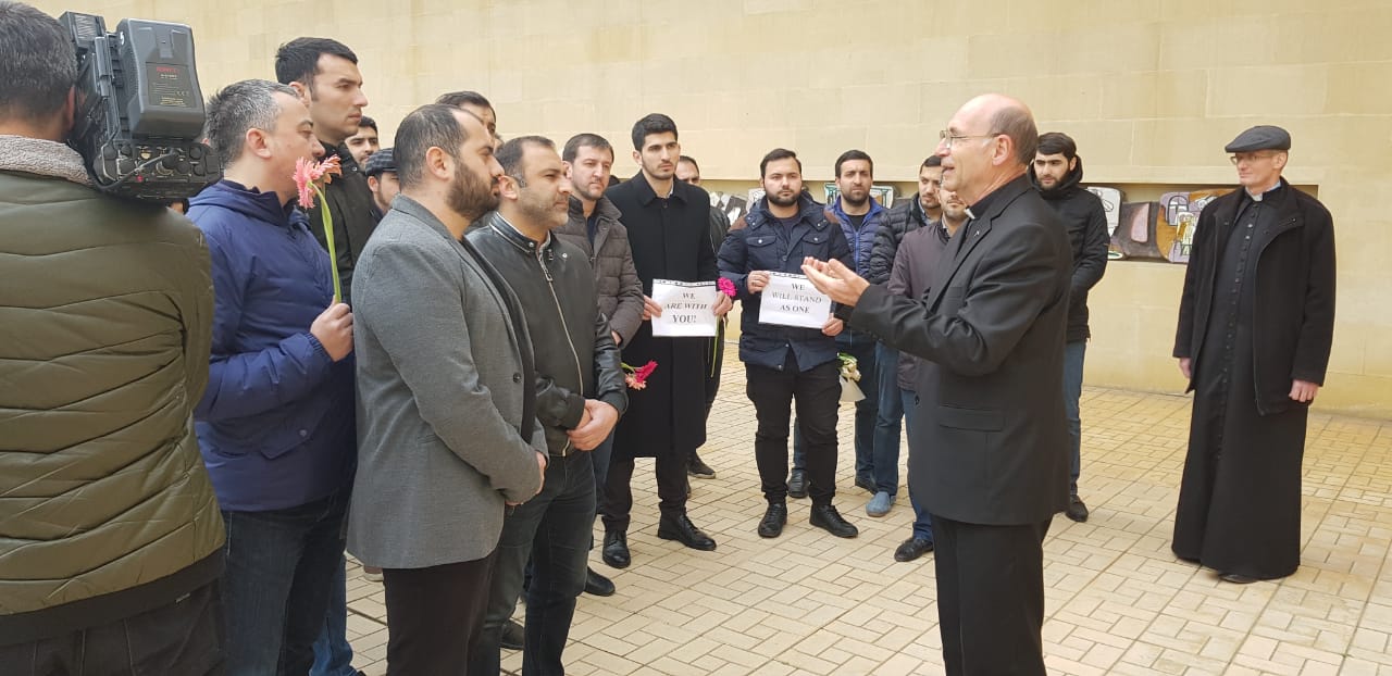 Öz növbəsində Azərbaycan katolik icmasının rəhbəri yepiskop Vladimir Fedeke təşəbbüsə görə müsəlmanlara təşəkkür edib. Onun sözlərinə görə, bu cinayətin Tanrı adına edilməsi daha da acınacaqlıdır və müxtəlif din nümayəndələrinin birliyi olduqca mühümdür.