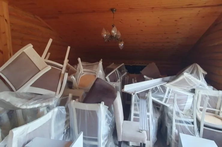 - obyektin mətbəxində tavan hissələri yanar material olan lambirlə üzlənilib;
