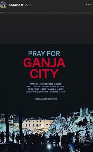 “Sambaçı” instaqram səhifəsi vasitəsilə “erməni terroruna son” həştəqli “Gəncə üçün dua et” yazılan şəkli paylaşıb.