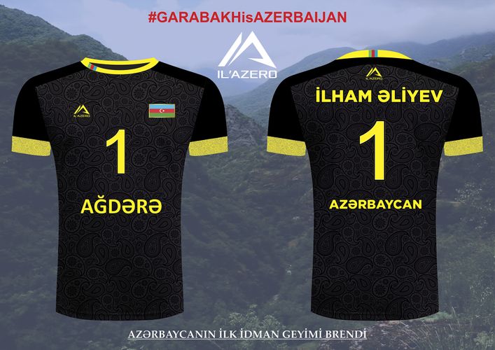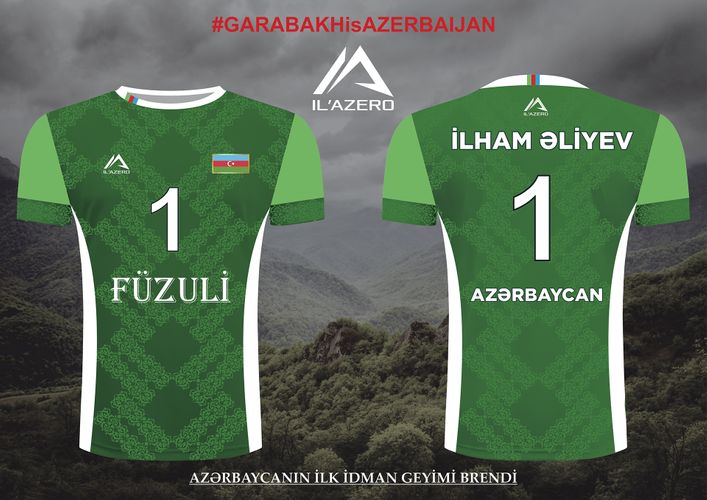 Azərbaycanın ilk idman geyimi brendi olan İL "AZERO"dan ordumuza və Qarabağa dəstək təbliğatı adı altında Azərbaycanın düşmən əsarətində olan şəhər və rayonlarının simvolik idman geyimlərini milli ruhda tərtib edilərək ictimaiyyətə təqdim edilmişdir.. Geyimlərin hər birini ayrı -ayrı regionlarımıza məxsus naxış,ornament və simvollarla bəzəyən İL`AZERO, nəfis tərtibatda olan bu formaları Ali baş komandan, cənab Prezidentimiz İlham ƏLİYEV adı altında 1 nömrə ilə təqdim etmişdir.