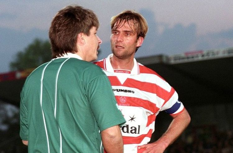 Futbolçu karyerasına hücumçu mövqeyində başlayan Yurgen Klopp ümidləri doğrultmadığından, bir müddət sonra onu müdafiəyə keçiriblər. Bu mövqedə daha 6 il oynayıb. Yeri gəlmişkən, futbolçu kimi ilk və son peşəkar klubu “Mayns” olub. 11 il ikinci Bundesliqada çıxış edən komandanın formasını geyinib, 52 qol vurub.