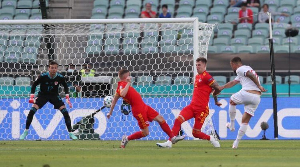Qarşılaşmanın ilk 45 dəqiqəsi isveçrəlilərin üstünlüyü şəraitində keçib. Topa nəzarət edən Vladimir Petkoviçin yetirmələri qol imkanları yaratsa da, bundan istifadə edə bilməyib. Uelsin azsaylı əks-hücumları təhlükəli, amma nəticəsiz olub.